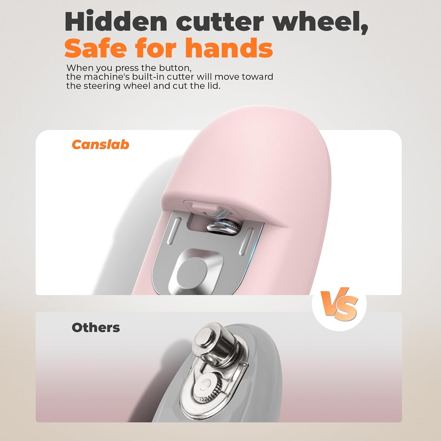 - 【USB RECHARGEABLE】- Canslab USB rechargeable can opener has a built-in 2000mAh rechargeable battery that opens approximately 100 cans*, which is 4 times the quantity cut by the aa batteries type until the batteries are drained. It is a cost-effective choice. Best for home kitchen and outdoor camping. *Data from Canslab lab, can sized 10.75oz. The number of cans opened may vary depending on the size of the can.