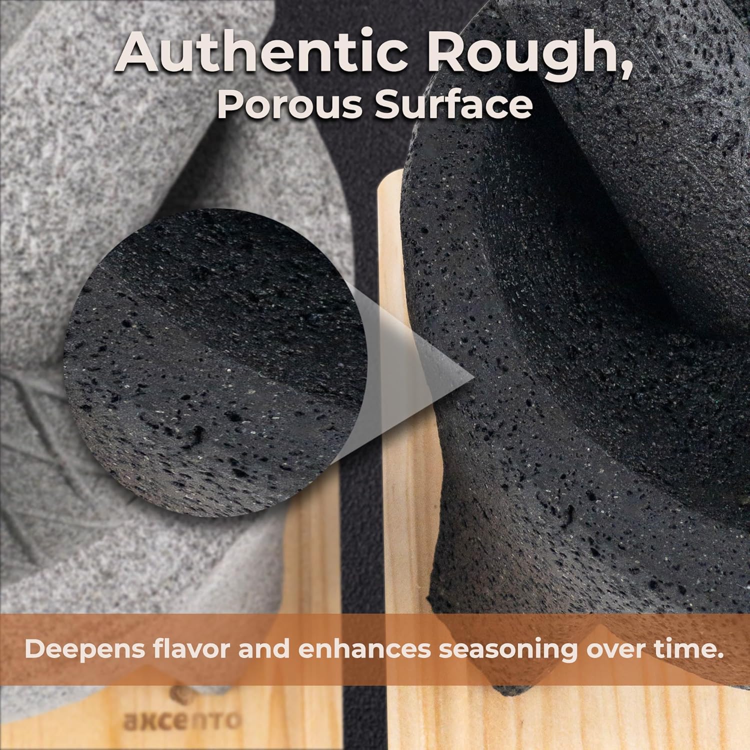 - 🔥 TWO VOLCANIC ROCK OPTIONS: Choose from our authentic black molcajete with a rough, porous surface—perfect for deepening flavor, enhancing seasoning, and grinding larger ingredients—or our refined basalt lava rock grey molcajete with the grinding capabilities of a real molcajete plus a less porous finish, ideal for achieving a fine, uniform grind with smaller ingredients as a mortar; both deliver exceptional heat retention and superior grinding for true traditional flavor.