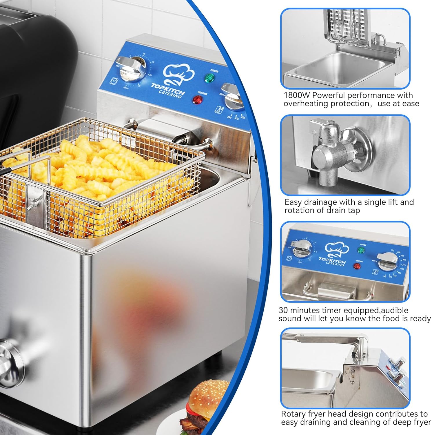 6.3Qt Electric Fryer with Oil Drain,30 Minutes Timer,Stretch forming oil tank,Lid and Solid Wire Mesh Basket,Light Duty Commercial Electric Countertop Deep Fryers-120V,1800W