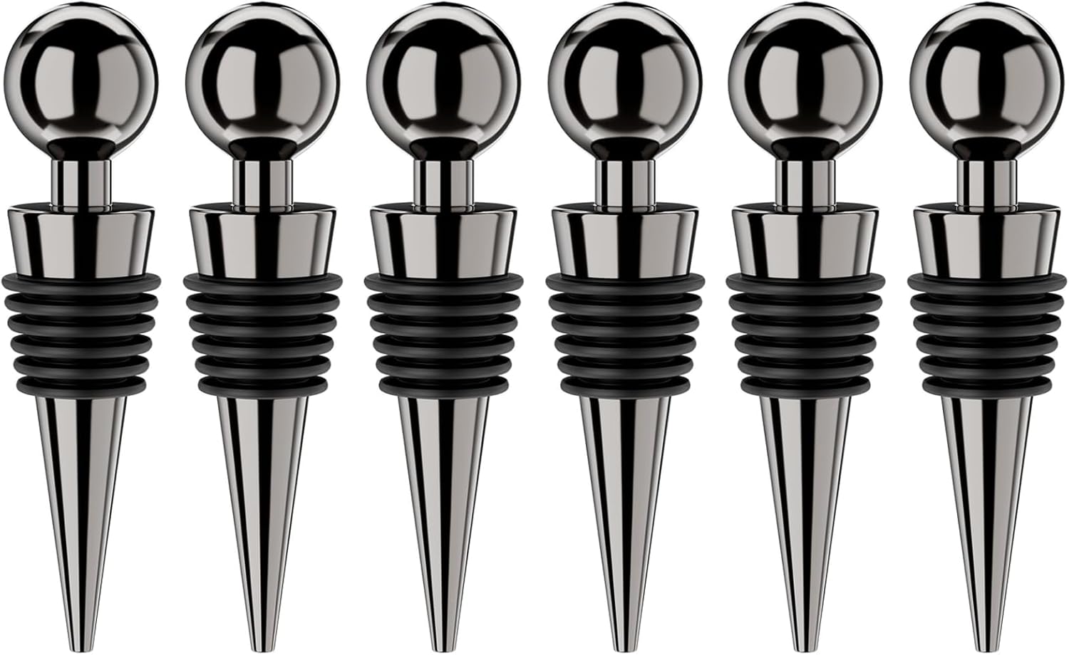 Vacuum Wine Bottle Stoppers 6Pcs - Reusable Silicone Corks, Leak Proof, Keep Fresh, Suitable for Standard Bottles (Black, 6 Pack)