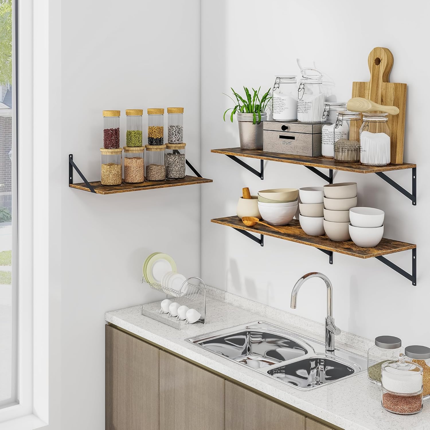 - [Discover More Organization Space] - Don't worry about cluttered desktops and floors! Why not try using the walls? The wonderful combination of smooth-surfaced metal brackets and engineered wood board texture decorates your home with a natural and rustic beauty! Great for organizing books, collectibles, plants, and trophies on the wall without occupying floor space.