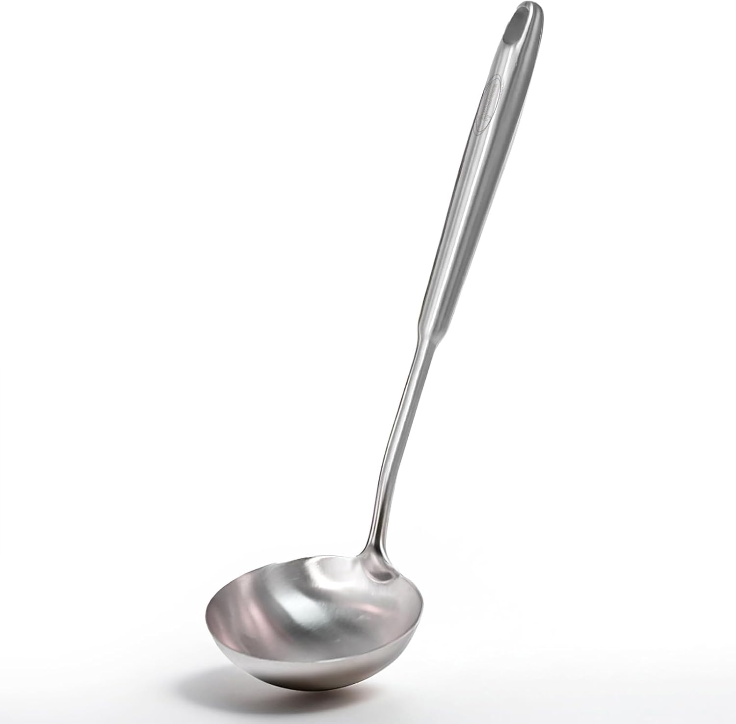- [Functional and Versatile] This large soup ladle can be used to stir or serve delicious homemade stews, chili, spaghetti sauce, and soups or for pouring punch in a cup. The sleek construction makes it an amazing gift for your friends or family members who love to cook delicious meals. Our gravy ladle is ideal for both home and professional use.