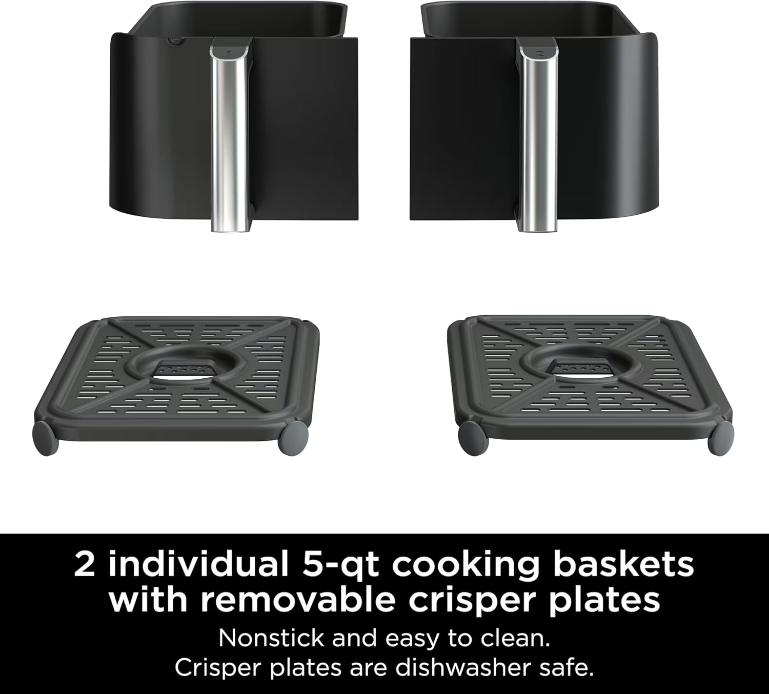 - WHATS INCLUDED: 1670-watt unit, two 5-qt nonstick cooking baskets, and (2) dishwasher safe crisper plates.