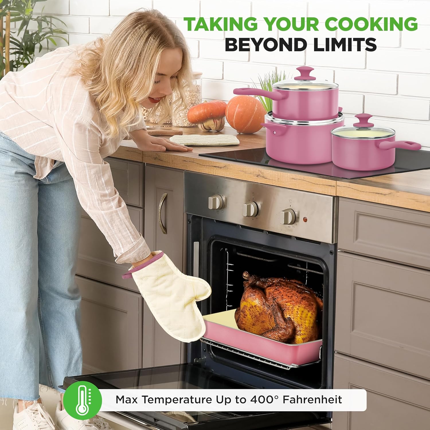 - VERSATILE FOR ANY COOKTOP – Safe for gas, electric, and induction cooktops (except small egg pan & milk pot), this cookware set is perfect for all your cooking needs. Whether stovetop or oven, it offers flexibility for various recipes and techniques.