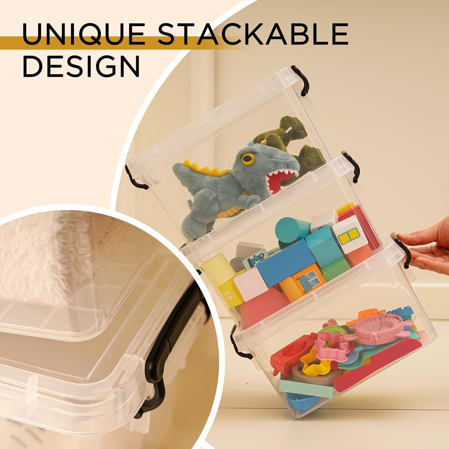ITYLIFE CITYLIFE 4 Packs 3.5 QT Small Storage Bins with Black Handle Clear Plastic Bins with Reinforce Bottom Stackable Storage Containers for Organizing Art Supply, Craft Stuff, Markers, Small Toys