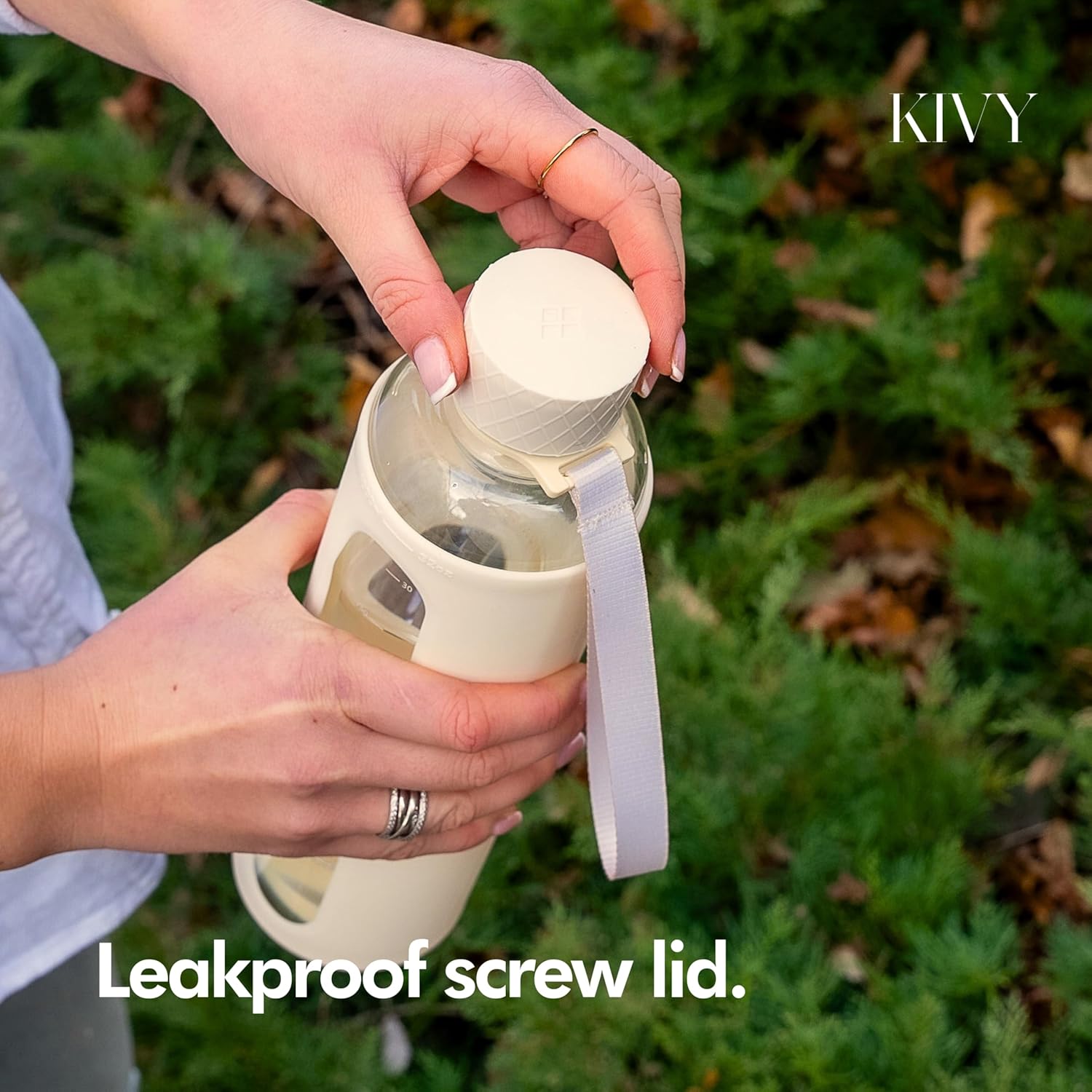 - LEAK-PROOF DESIGN FOR WORRY-FREE USE – The secure lid keeps this glass water bottle completely leak-proof, preventing spills in your bag.