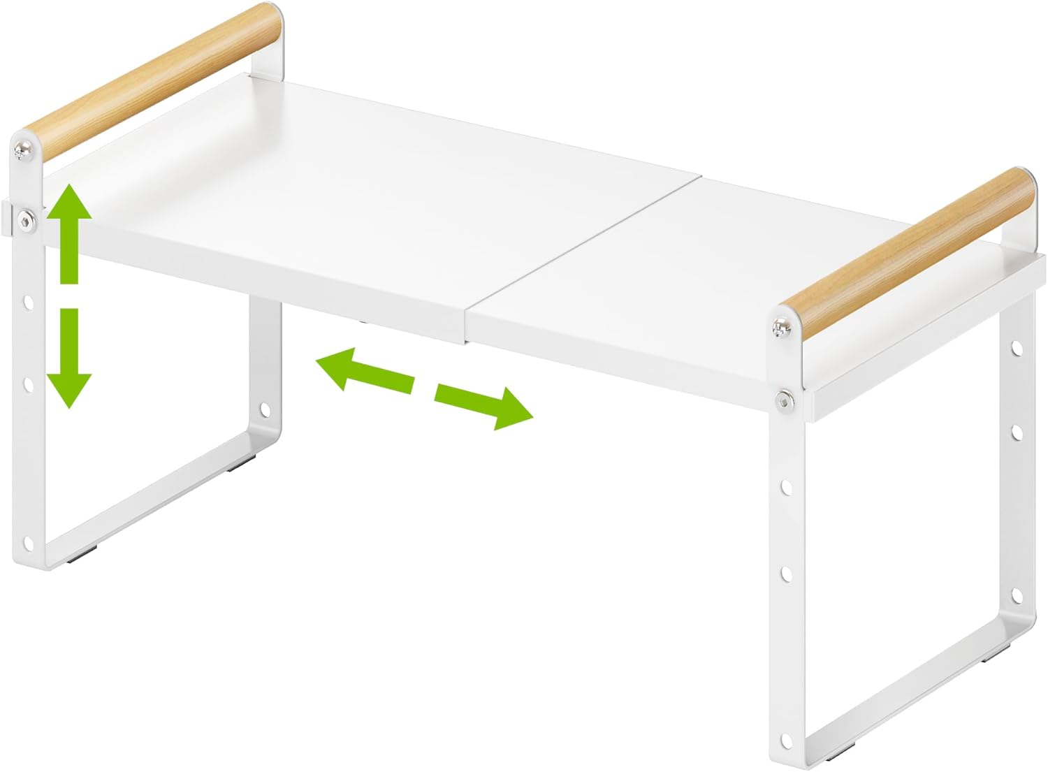 - 【Expandable & Stackable Cabinet Organizer】The length and height of this shelf can be adjusted, The length of expandable shelf can be adjusted from 12.87 to 21.04 Inches according to the different space; The Height can be adjusted from 5.3 inches to 7.68 Inches depending on how you want to arrange your space.