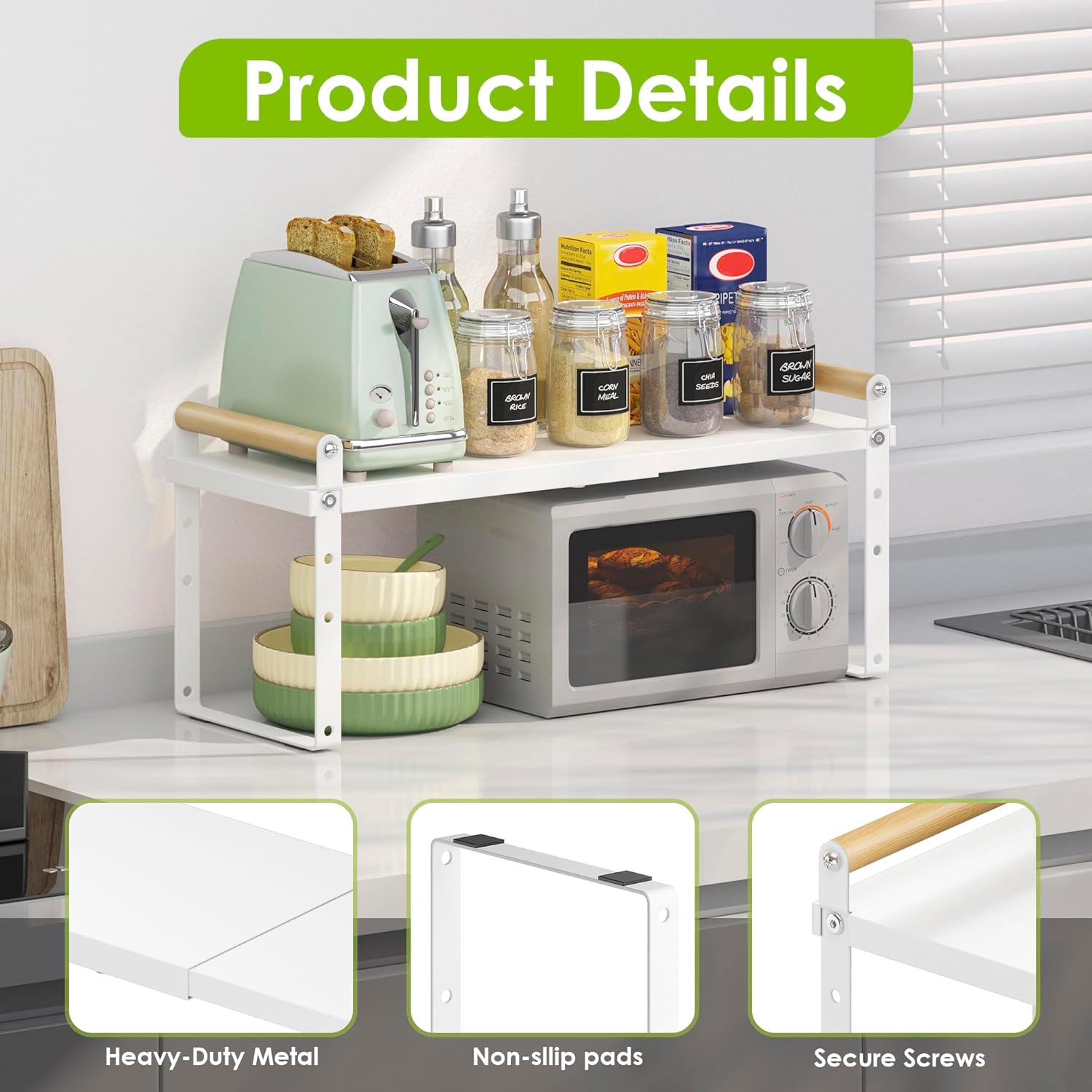 - 【Multifunctional Storage Shelves】Say goodbye to the chaos kitchen area! With the help of this kitchen shelf, you can save a lot of space for cooking, make your kitchen clean and neat;They can also be placed inside a cabinet closets, pantry cupboards, bathroom countertop.