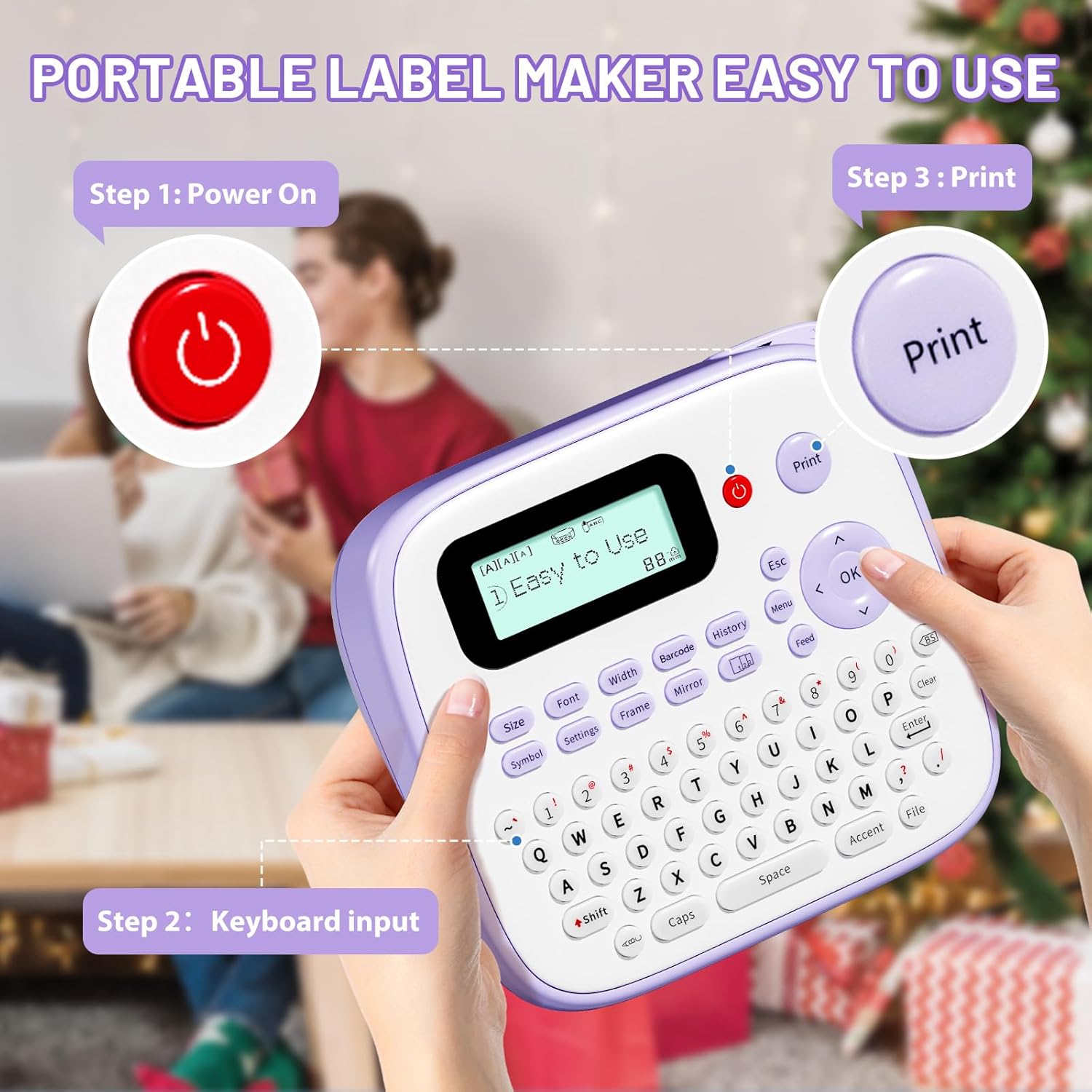 Label Maker Machine with-Tape Waterproof, Purple Desktop Label Maker for Teachers Kids Classroom, Portable Labeler with Multiple Symbols &Fonts for Home Office School Use, D210S