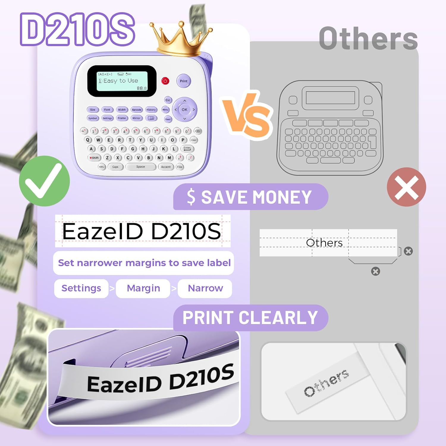 - Portability and Power Options : The D210S purple desktop label maker can be powered by 6 AAA batteries or stay powered with Type c cable. Desktop portable design allows you to create professional labels anytime, anywhere, boosting work and life efficiency