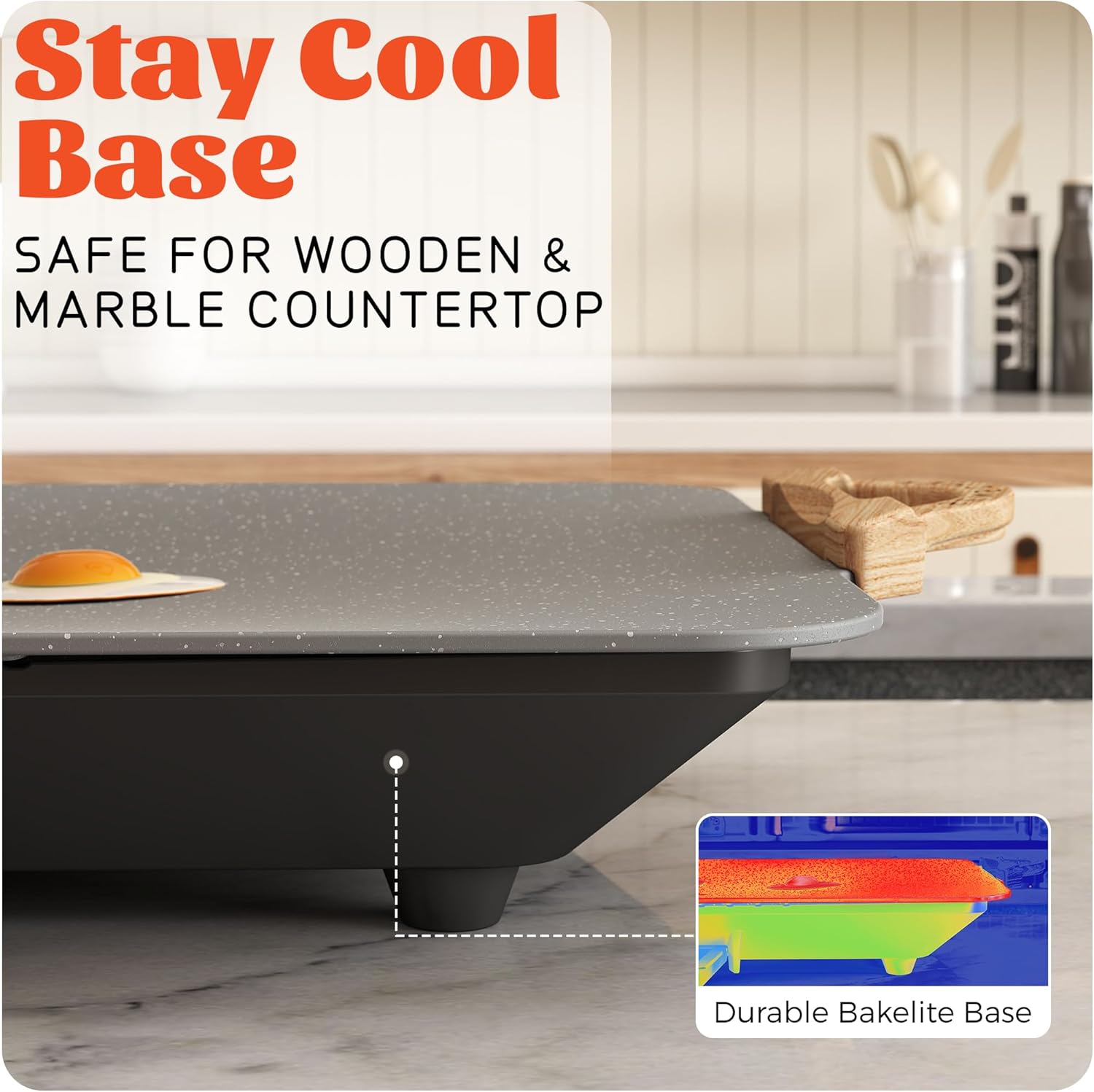 - 3 Years Durable Nonstick: Ultimate Granite Nonstick Coating, Experience 8x more durable than standard coatings *vs typical ceramic electric griddles