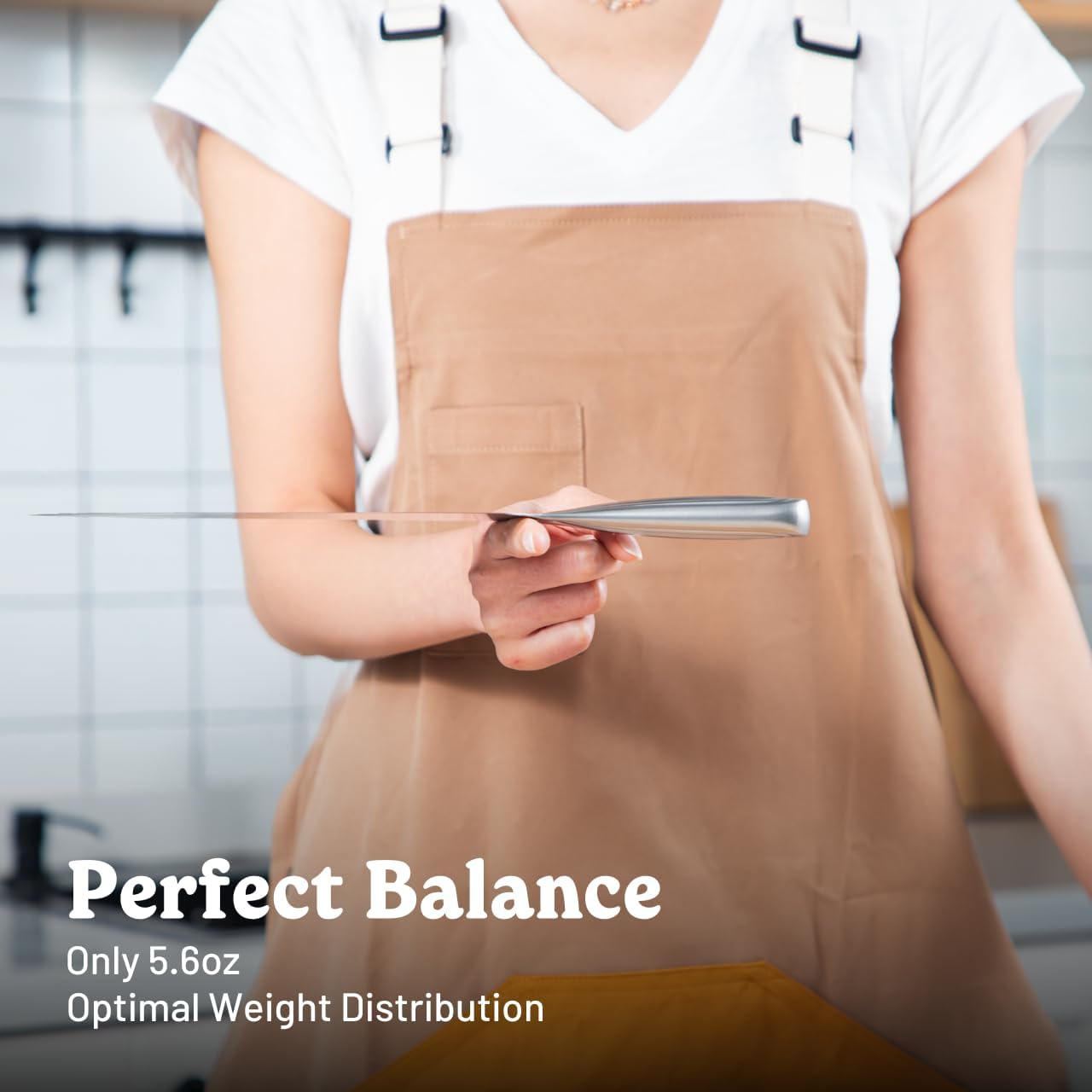 - Ergonomic All-Metal Handle: Experience comfort with our chef knives featuring an ergonomic handle. Designed for effortless grip, it's perfect for knives for men and women who appreciate precision and style in the kitchen.