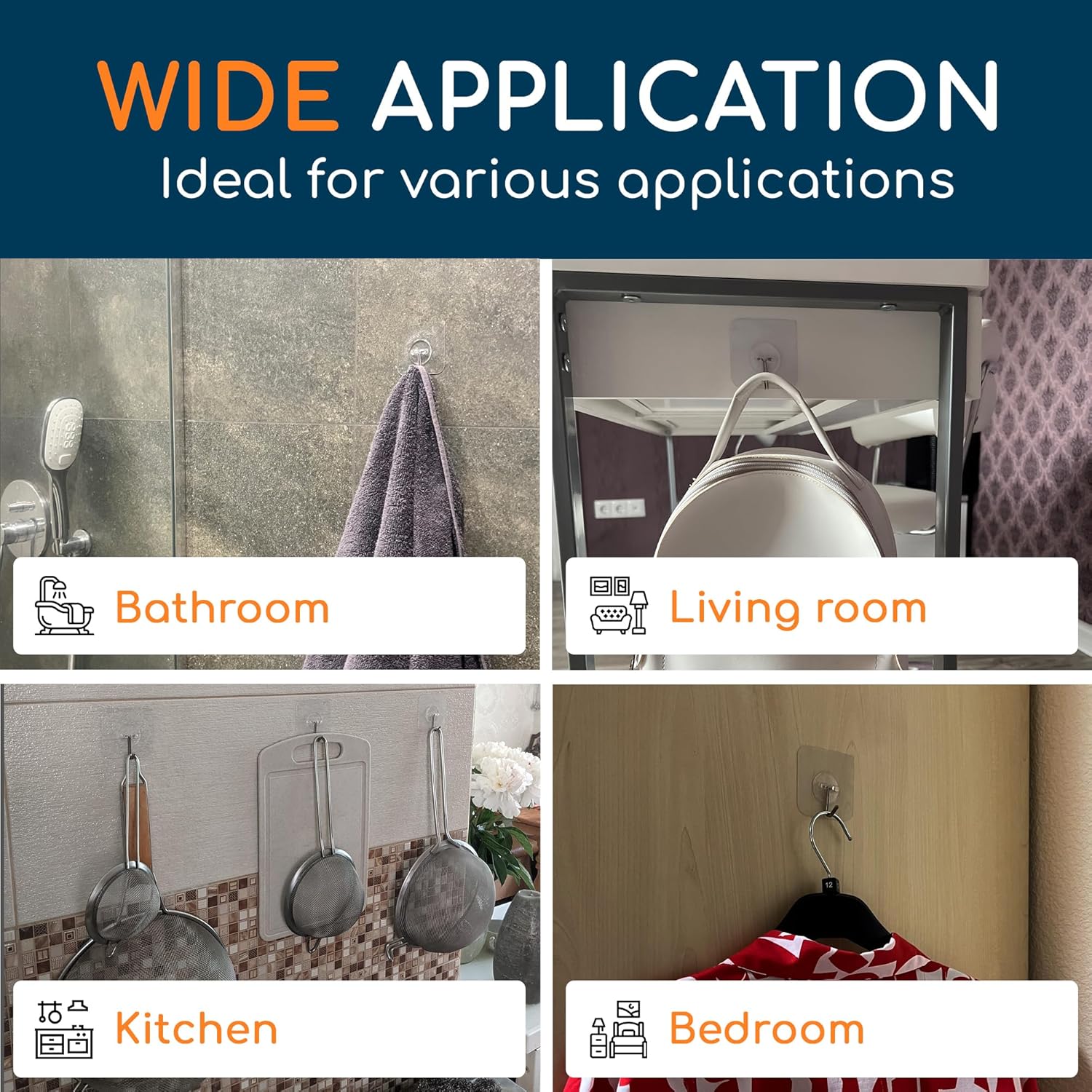 - Premium materials: Adhesive hooks crafted from robust stainless steel and durable PVC; high quality and longevity; remain clean and unaffected by time; non-toxic, recyclable, and transparent.