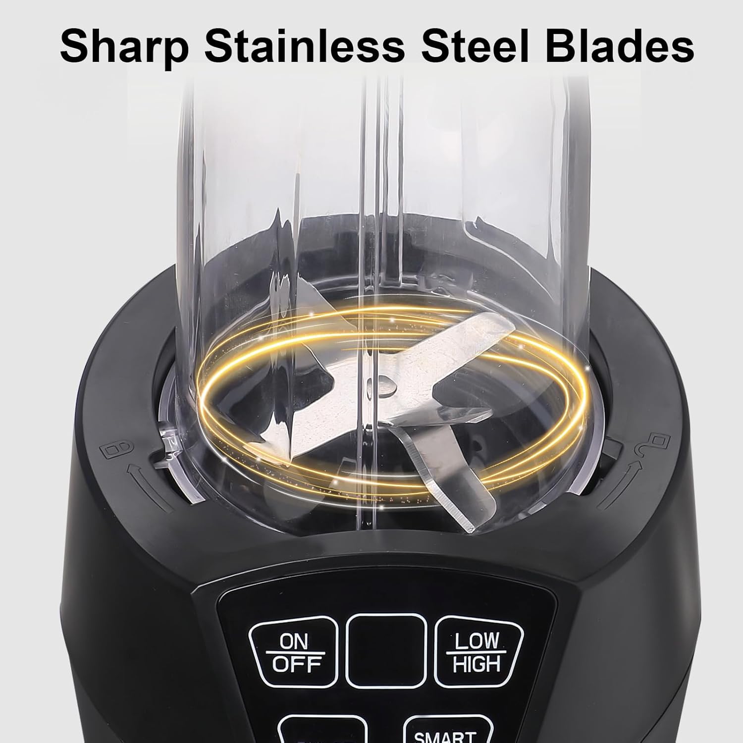- Powerful Motor: Rated 1000 Watts smoothie machine has 1200-Peak-Watts power, crushes the hardest ingredients and frozen fruit for smoothies in seconds