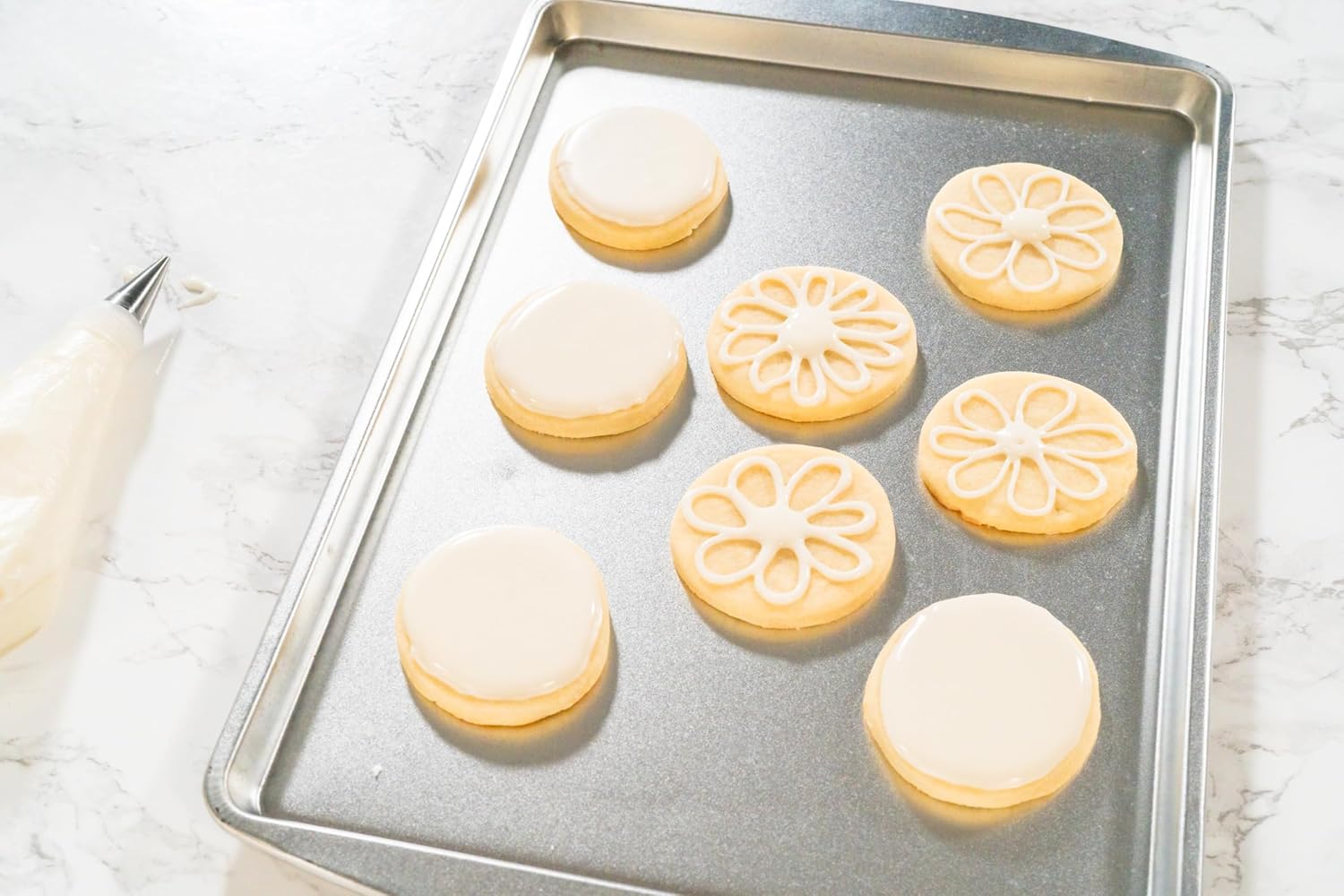 - Royal Icing Tools - This starter set equips you with all the essential tools for cookie decorating, including a spatula, silicone measuring cup, piping bags, couplers, bag clamps, piping tips and scribe tool.