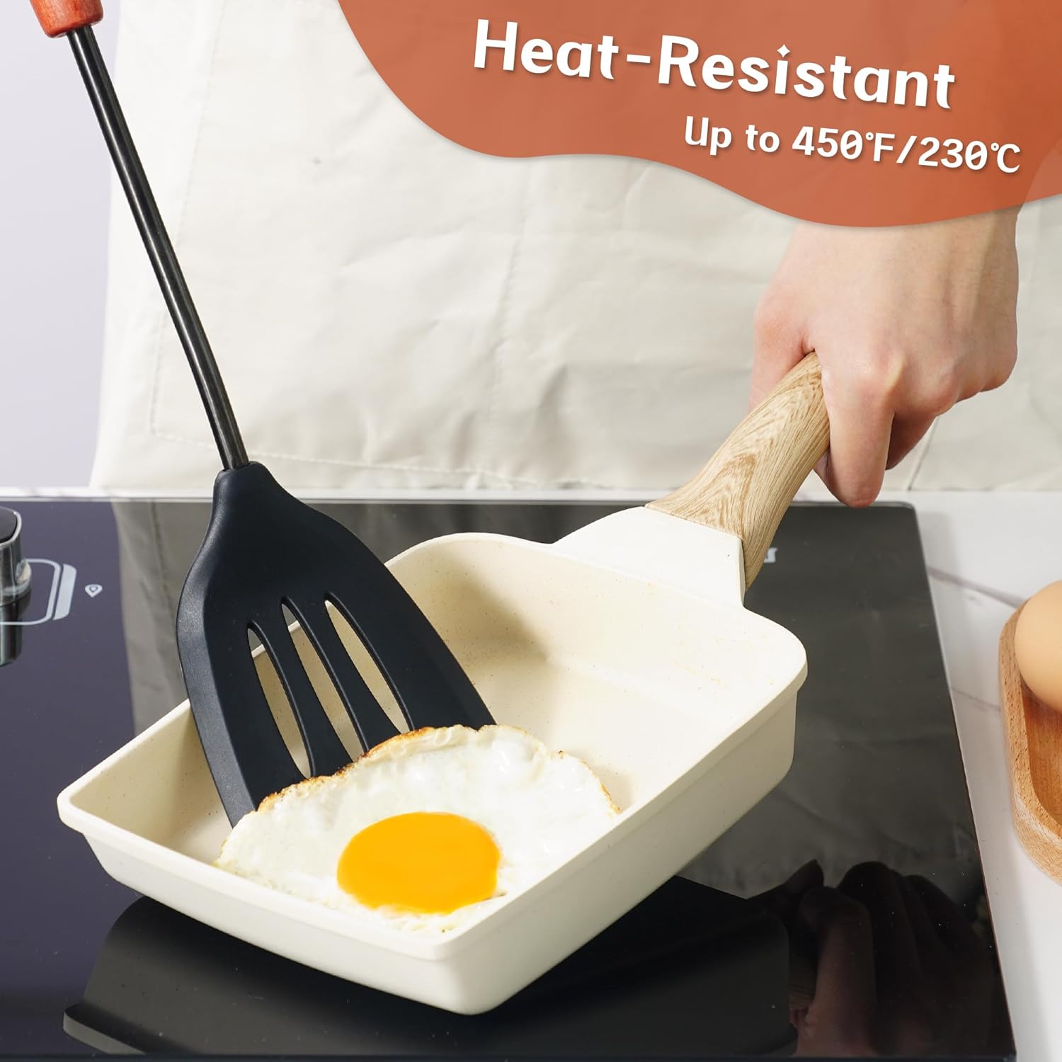 - Unique design cooking utensils : Wooden handle combination of black-plated stainless steel and food-grade silicone,special and durable