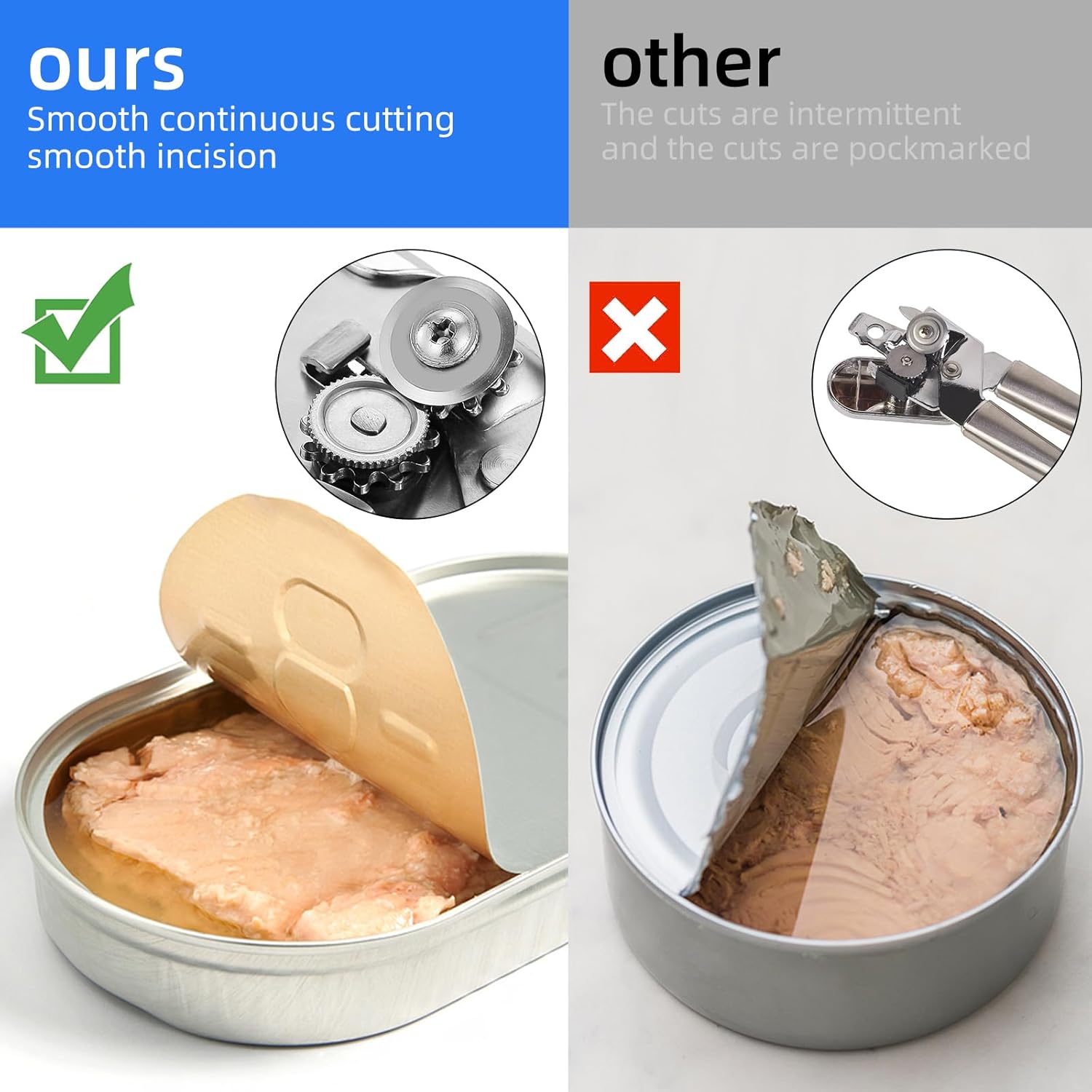 - Sturdy Construction: Built with durable materials, this can opener is made to last through countless uses. Food safety High strength high hardness alloy high carbon stainless steel cutting blades stay sharp, suitable for opening cans of all sizes and can be safely in direct contact with food. After use, it can be cleaned in the sink or dishwasher, stainless steel tableware will never rust, and it will be a reliable tool in your kitchen for years to come