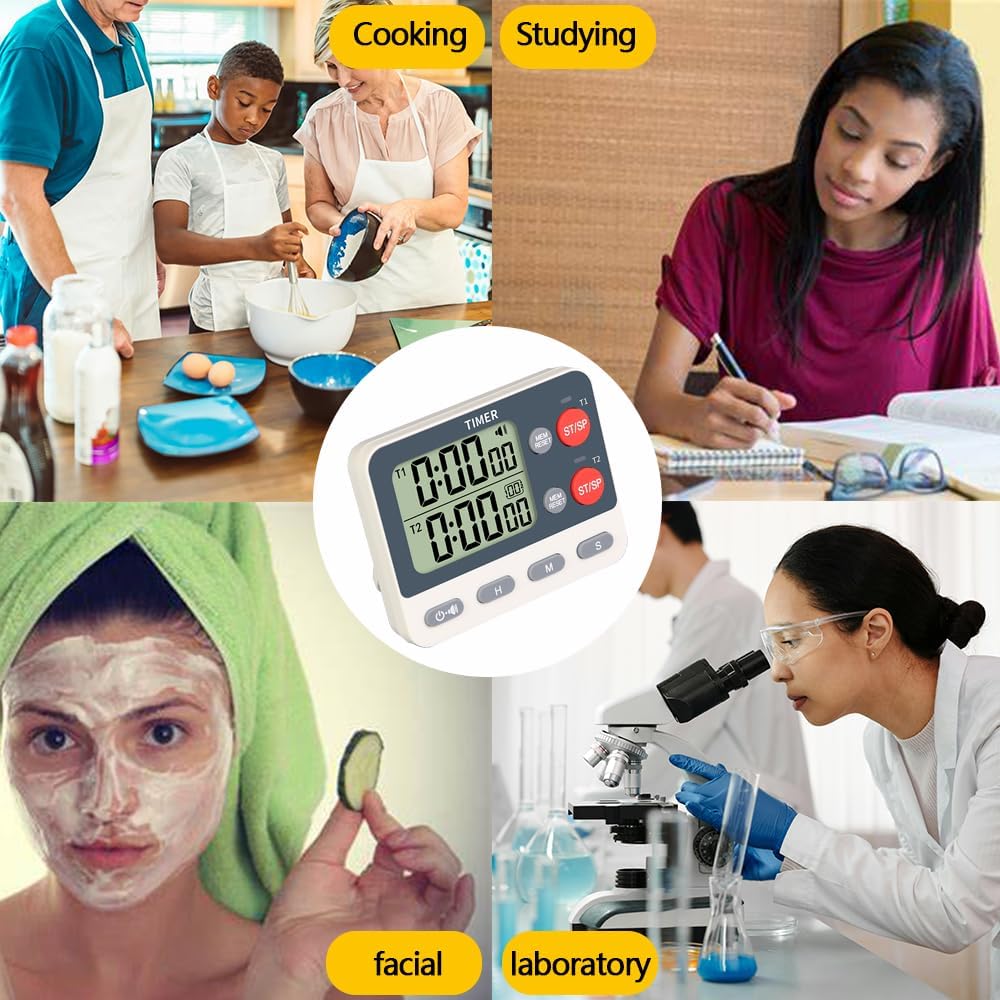 - 【DUAL COUNT UP/DOWN TIMER】: 2 events can be counted up & down simultaneously. It can also act as a stopwatch and time up to 9 Hours, 59 minutes and 59 Seconds. Perfect timer for cooking, barbecue, baking, exercise, gym workout, sports, homework, games, kids’ activities and meetings.