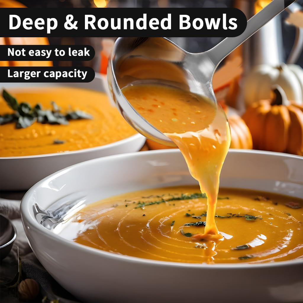 - Easy to Clean: Heavy gauge 304 stainless-steel construction is 100% dishwasher friendly and also cleans up quickly and easily in the sink. Wont rust or corrode like regular metal. The deep bowl is perfect for stews, chili, spaghetti sauce and soups too. Our soup ladle will take care of all of your needs.