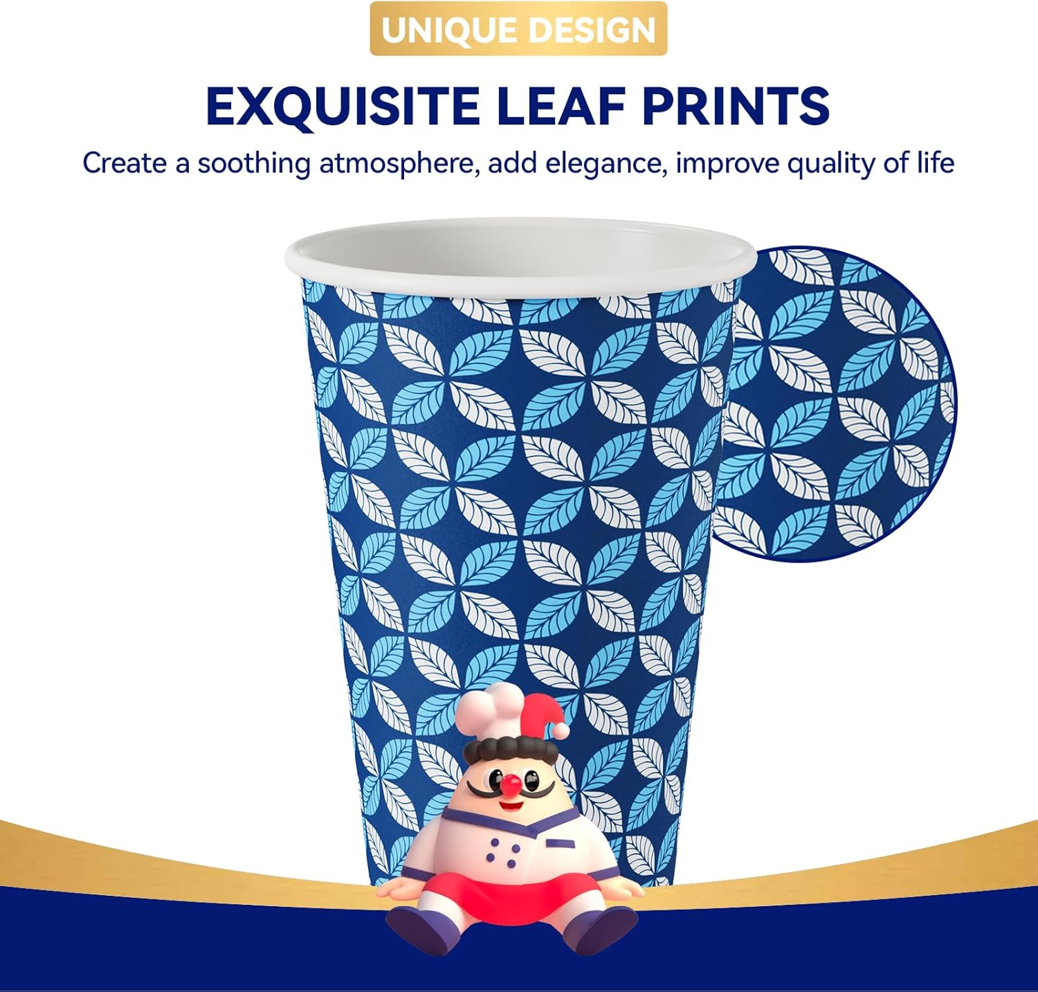 - 【Great Value】With 1000 paper cups in each pack (500 blue leaf print and 500 grey leaf print), this purchase offers great value. No washing is required, making it convenient for gatherings or everyday use