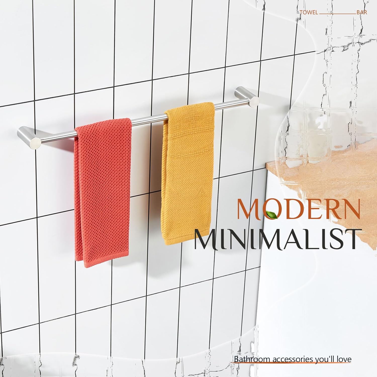 KOKOSIRI Towel Bar Brushed Nickel 24-Inch Bathroom Towel Holder Single Rack Bathroom Hardware Accessories Wall Mounted Stainless Steel, B4007BR-L24