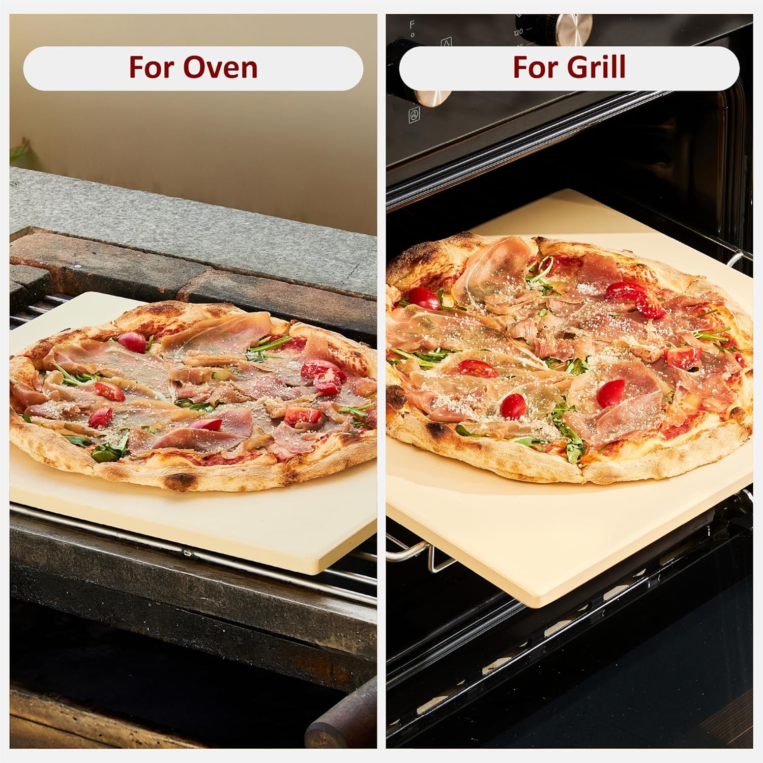 - FOR OVEN & GRILL – This 16x18 inch pizza stone is perfect for baking crispy pizzas, bread, and other baked goods in your oven or grill.