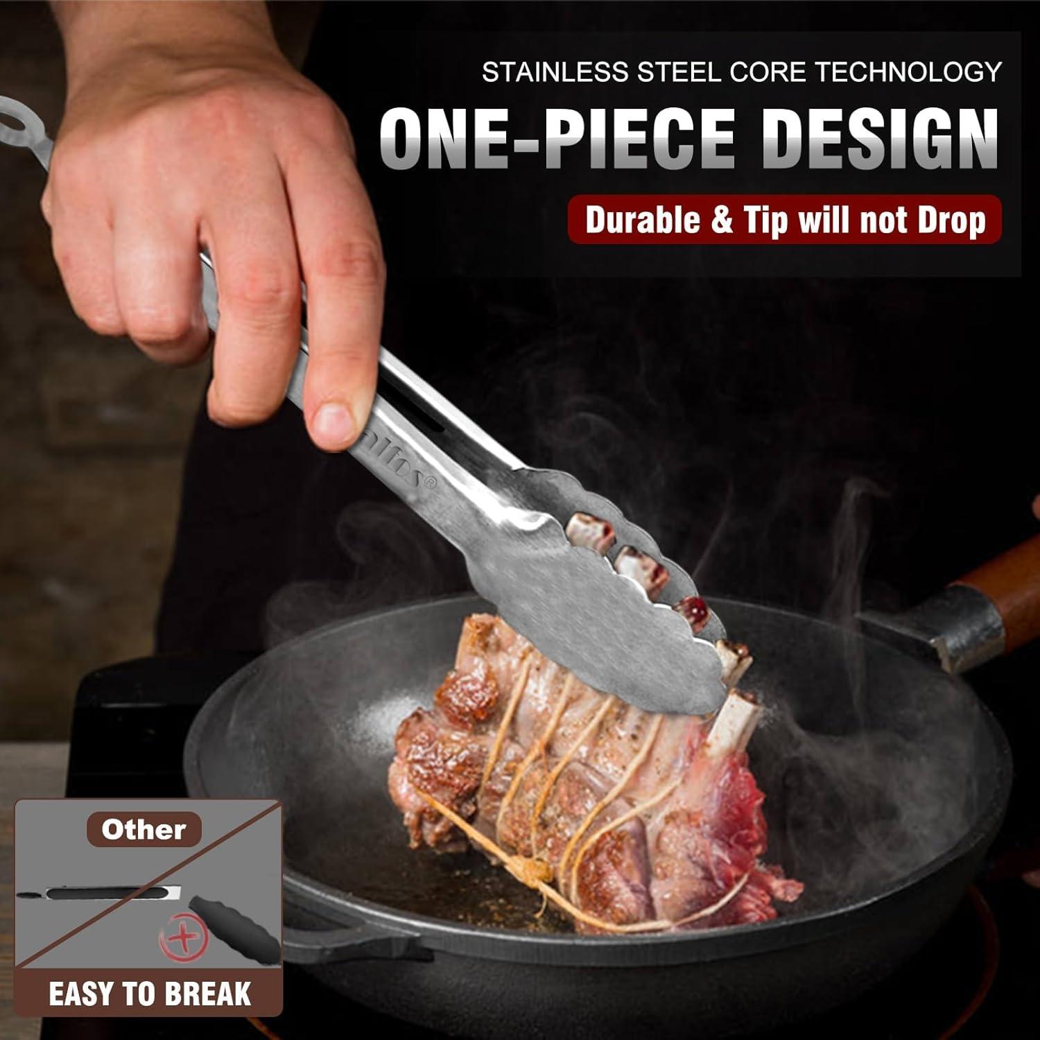 - ERGONOMIC HANDLE DESIGN AND HEAT RESISTANT-the handle is full metal ,great for thumb rest,and ensures handle grip and control.The metal kitchen tong head is super heat resistant.Easy to rinse, dishwasher safe and easy to clean.