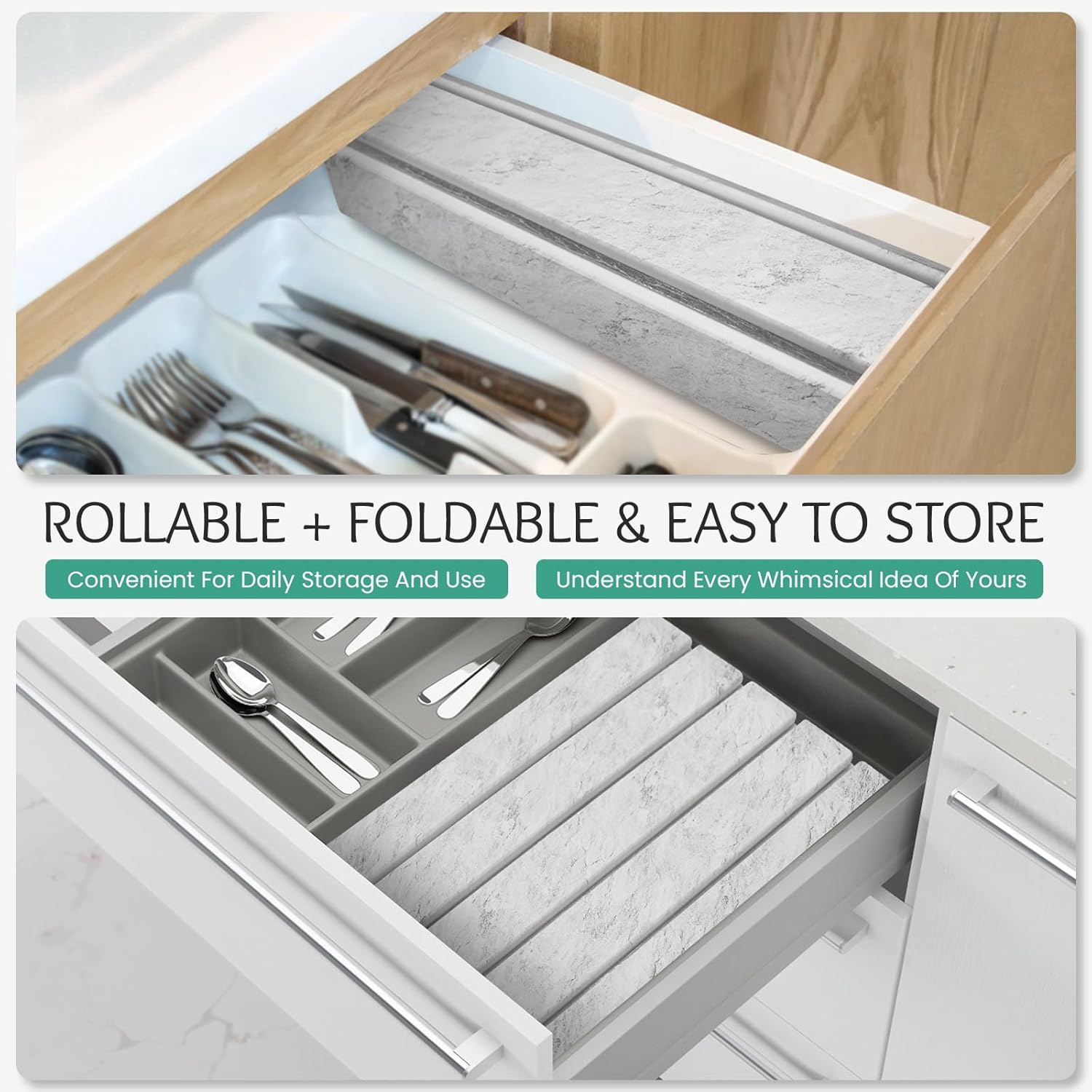 - 【Foldable & Rollable Design】:The diatomaceous mat what we designed is foldable and rollable,efficiently helping you achieve the idea of convenient storage.When not in use,can be folded or rolled up and placed in kitchen drawers,cabinets,clothing drawers etc;when during use,its large size provides spacious space for the tableware,cookware,cups etc.It comes with PVC anti slip pad that can be used together to achieve double-sided anti slip and double safety.Stone drying mat for kitchen counter to your kitchen countertops to be clean and organized.