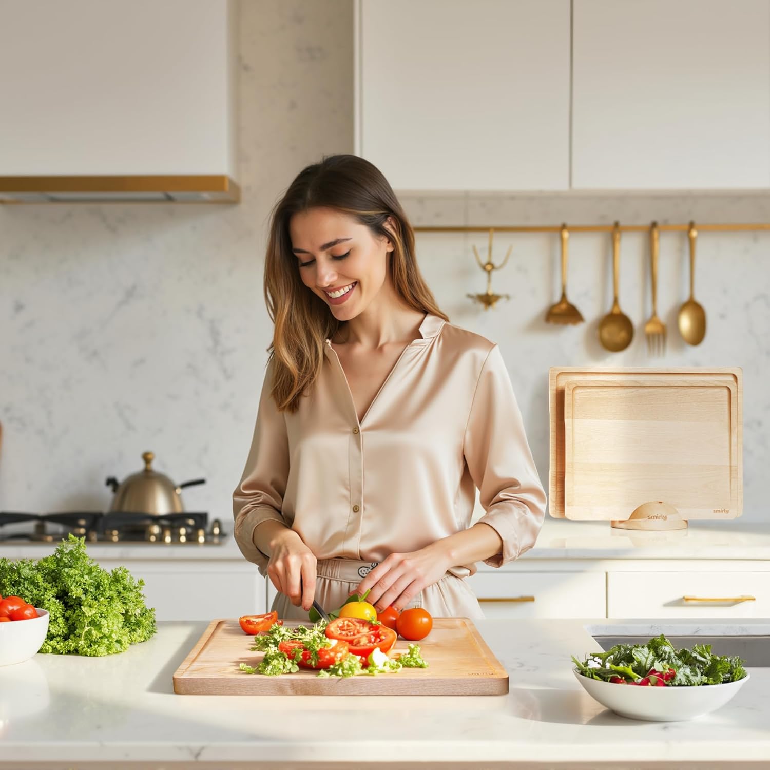 - Stylish and Durable Upgrade - Add elegance to your kitchen with our Smirly birch wooden cutting boards for kitchen. These high-density boards are engineered to maintain their shape over time for long-lasting durability. Their fine and uniform texture and light birch grain elevate any kitchen