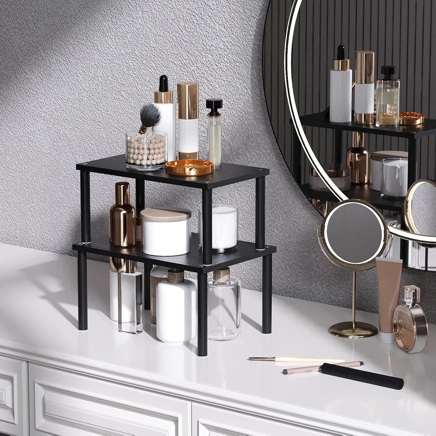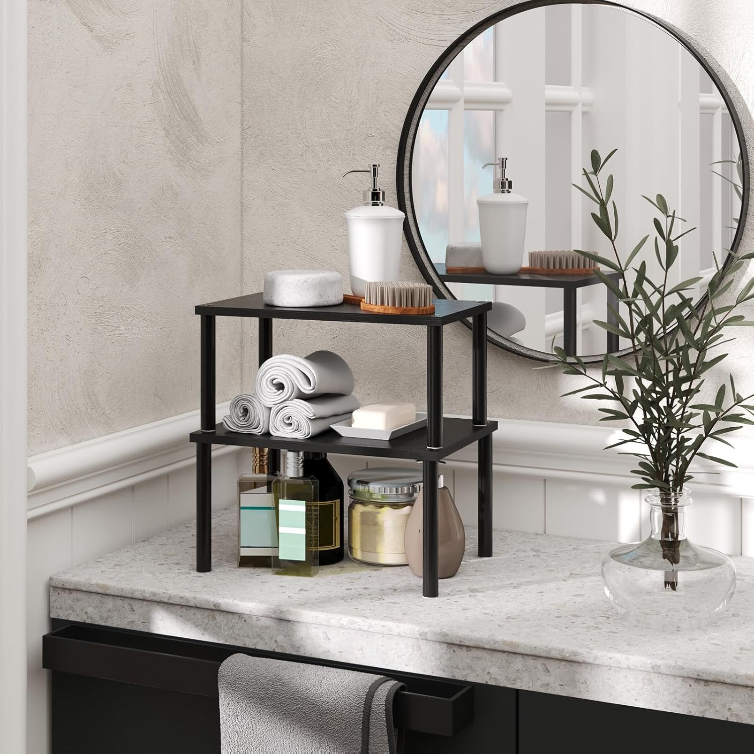 - 【Sturdy Round-Bar Design, Load-Bearing Reliability】Featuring 0.59 inch reinforced round bars, this rack not only looks aesthetically pleasing but also ensures exceptional load-bearing capacity. Whether placing heavy bottles or lightweight spice packets, it remains stable and, giving you peace of mind.