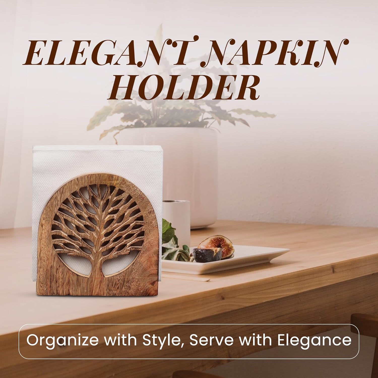 Tepo Wood Napkin Holder for Table, Stylish & Durable Napkin Stand for Paper Napkins, Wooden Napkin Holder for Kitchen, Dining, and Outdoor Use, Functional & Elegant Tabletop Organizer