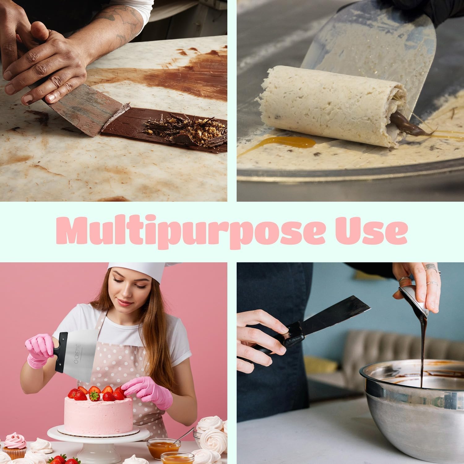 - Versatile Chocolate Scraper & Coating Spatula – Ideal for chocolate tempering, cake leveling, dough scraping, and icing smoothing, making it a must-have tool for bakers and chocolatiers.