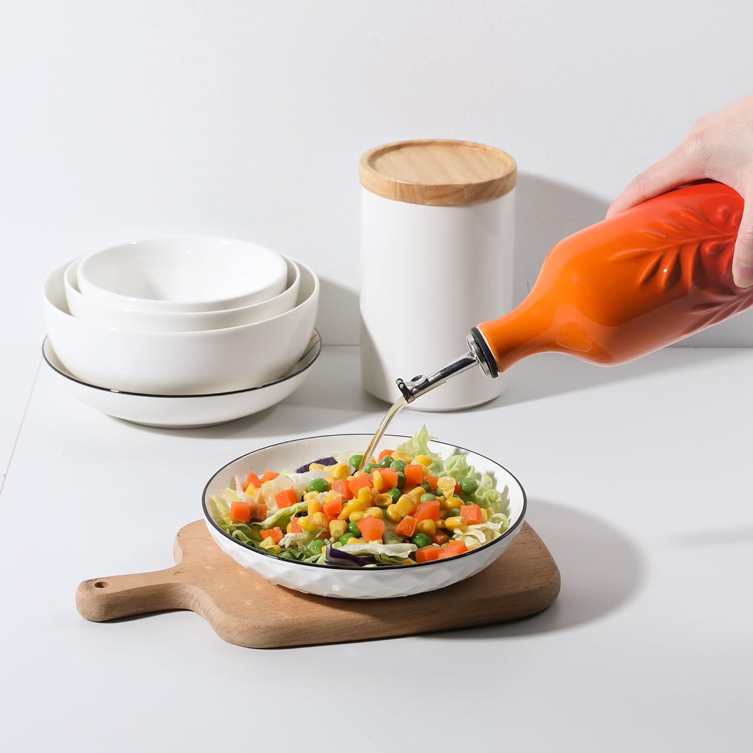 Sweejar Ceramic Olive Oil Dispenser Bottle, 20 Oz Relief Opaque Oil Cruet Protects To Reduce Oxidation, Suitable for Storage Soy Sauce, Coffee Syrup, Liquids, Set of 1 (Gradient Orange)