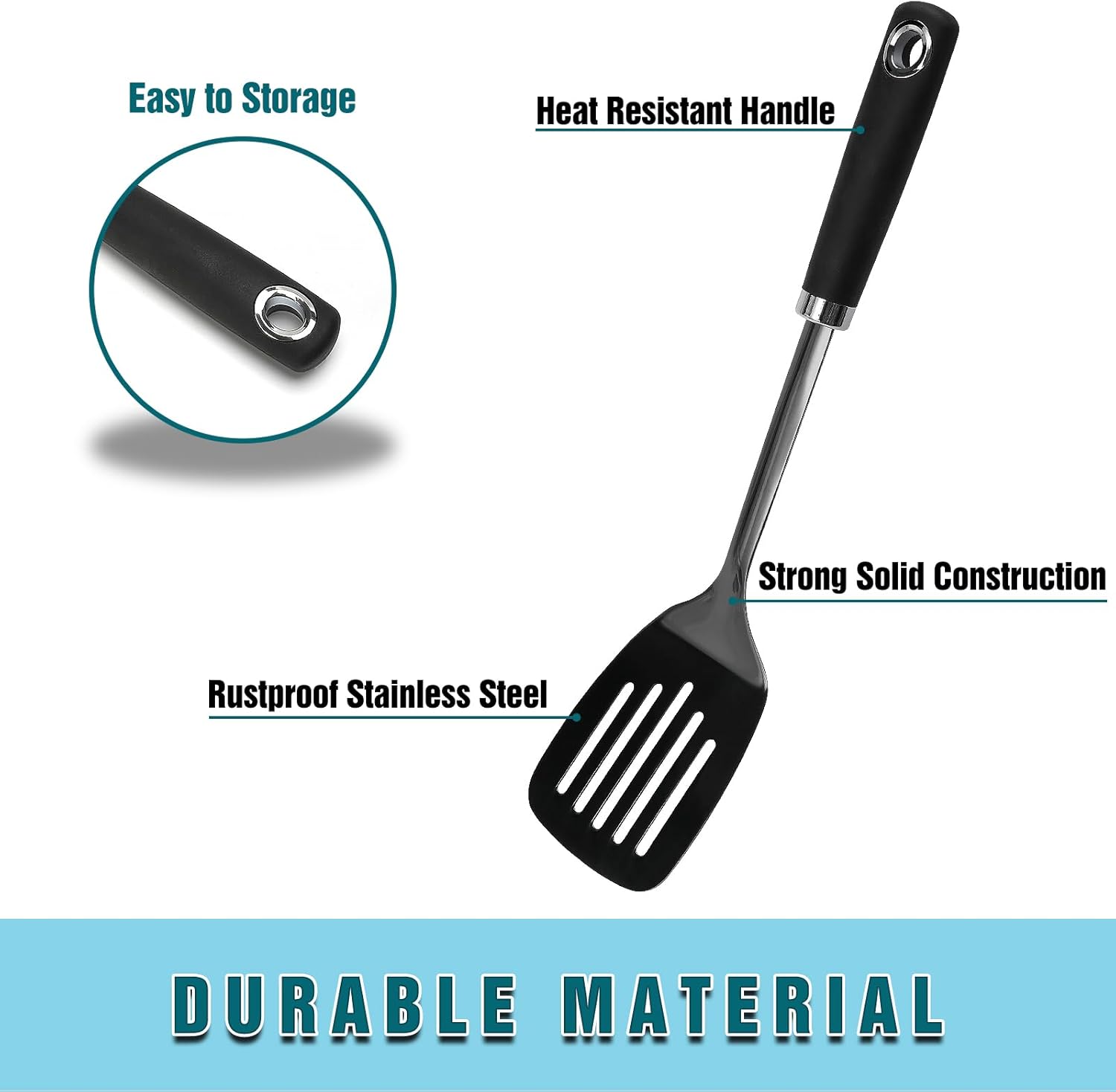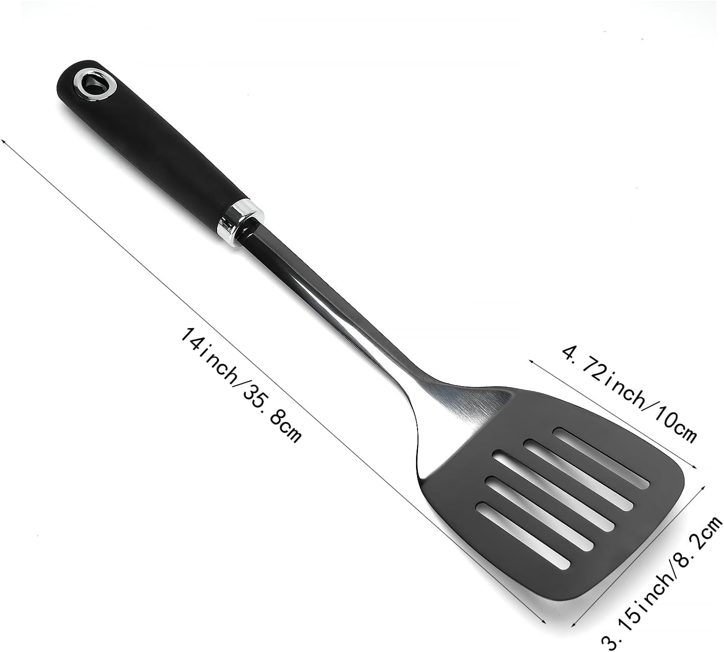 - Comfortable Handle: Non-Slip Spatula with ergonomic handle. The balanced construction ensures easy handling, providing excellent control when turning or lifting food.