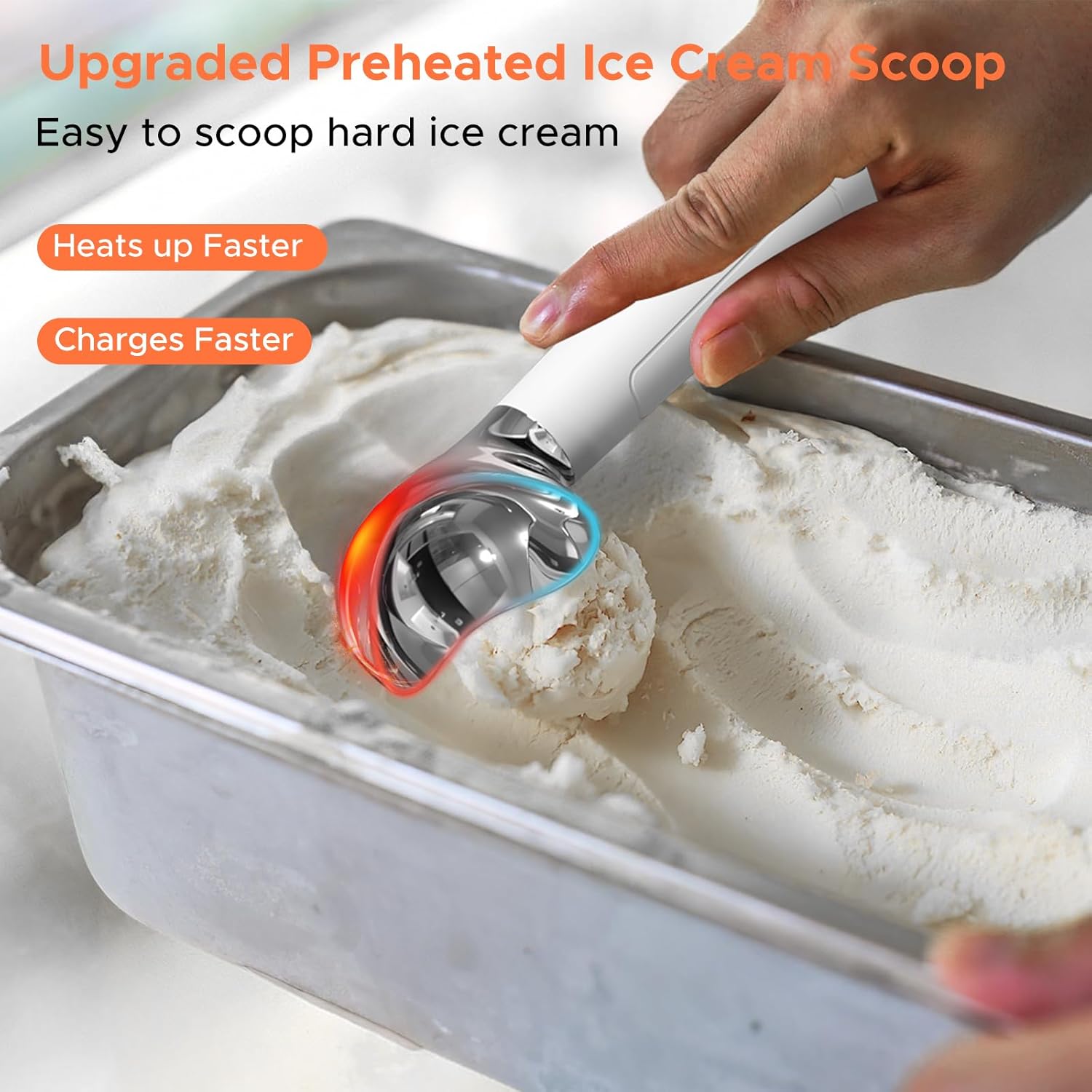 NEWEST Heated Ice Cream Scoop, Rechargeable Electric Warming Scooper with LED Display, Heats to 158°F for Hard Ice Cream, IP67 Waterproof, Easy for Seniors & Kids (White)