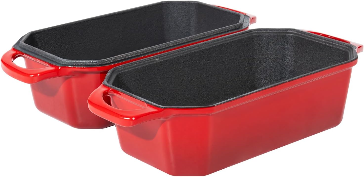 Bread Pan Cast Iron Loaf Pan with Lid Bread Loaf Pan 9x5 Inch Loaf Pan Enameled Cast Iron Sourdough Loaf Pan, Red