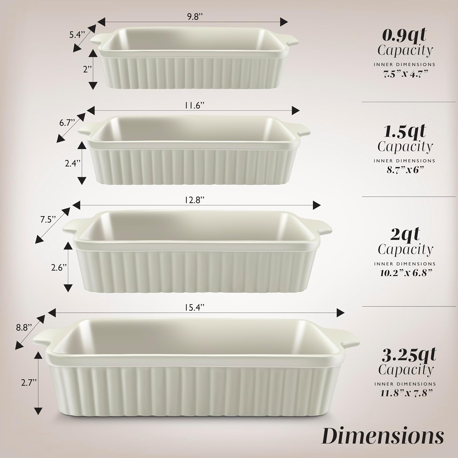 - Versatile 4-Piece Ceramic Casserole Dish Set – Includes 4 baking dishes in assorted sizes, perfect for casseroles, lasagna, roasted veggies, baked pasta, and desserts. Ideal for family dinners, potlucks, and everyday baking.