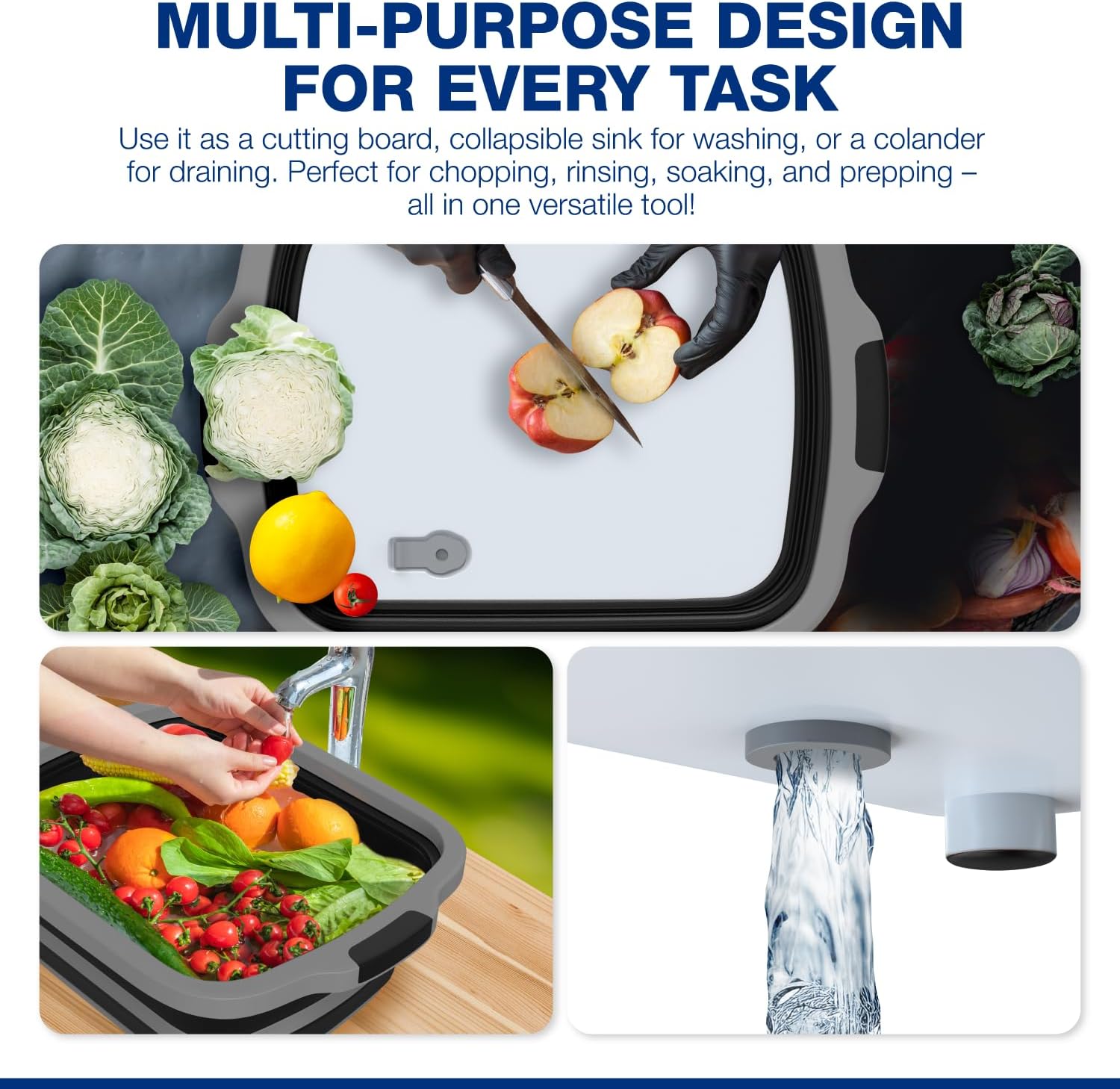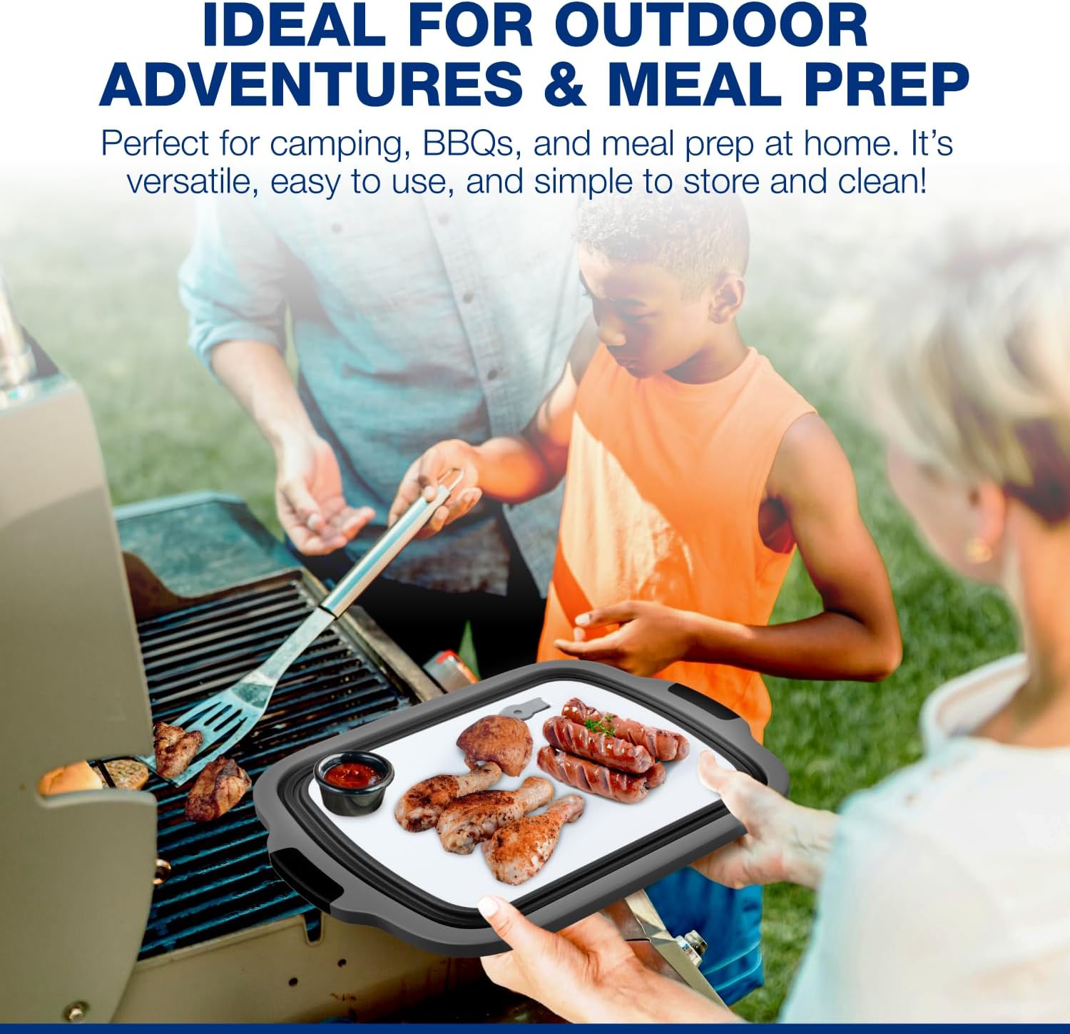 - BBQ Marinate, Drain & Prep – Made from food-safe materials, this tub lets you marinate meats mess-free, drain excess liquids with the built-in strainer, and prep food on the sturdy cutting board. The collapsible design saves space, and it's easy to carry for effortless grilling.