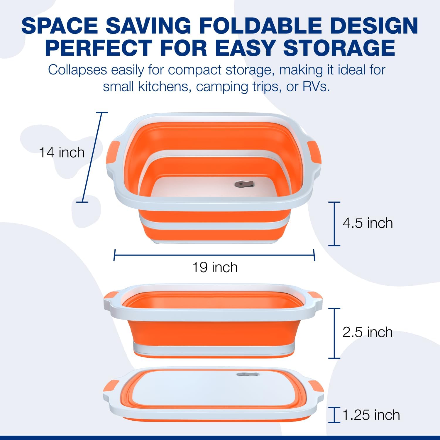 - Collapsible & Easy to Store – Spacious when in use, yet compact when stored. This large prep tub provides plenty of room for marinating meats, prepping ingredients, and draining liquids. When you're done, it folds flat for effortless storage in any kitchen, BBQ station, or outdoor setup
