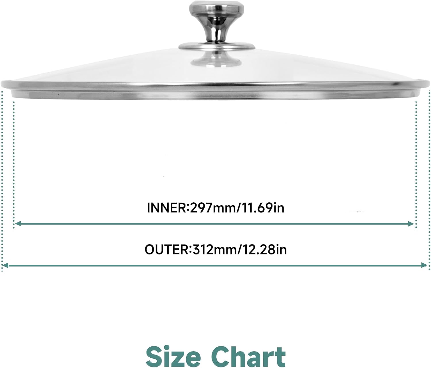 13 In Glass Lid for Frying Pan, Tempered Replacement Cover Compatible with All 13 inches Cookware for Skillets, Round Cast Iron, Cast Aluminium, Stainless Steel Pans &Pots