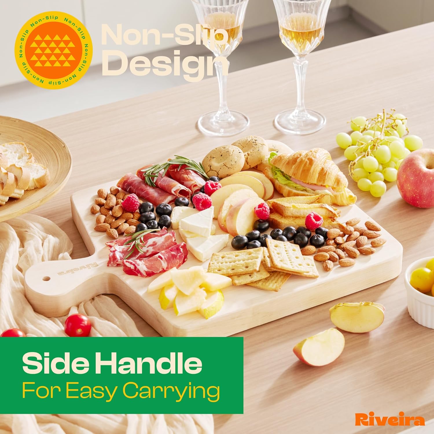 - Handle Everything with Confidence — The built-in handle holds of the maple cutting boards are designed for handling everything with confidence and easy maneuvering. Pre-oiled and ready for immediate bewilderment, this wooden chopping board is not just convenient for the kitchen mess but has a unique design to maintain, ensuring a performance that is both comfortable and clean for chopping boards for kitchen. Riviera non toxic cutting boards for kitchen will be perfect in your kitchen.