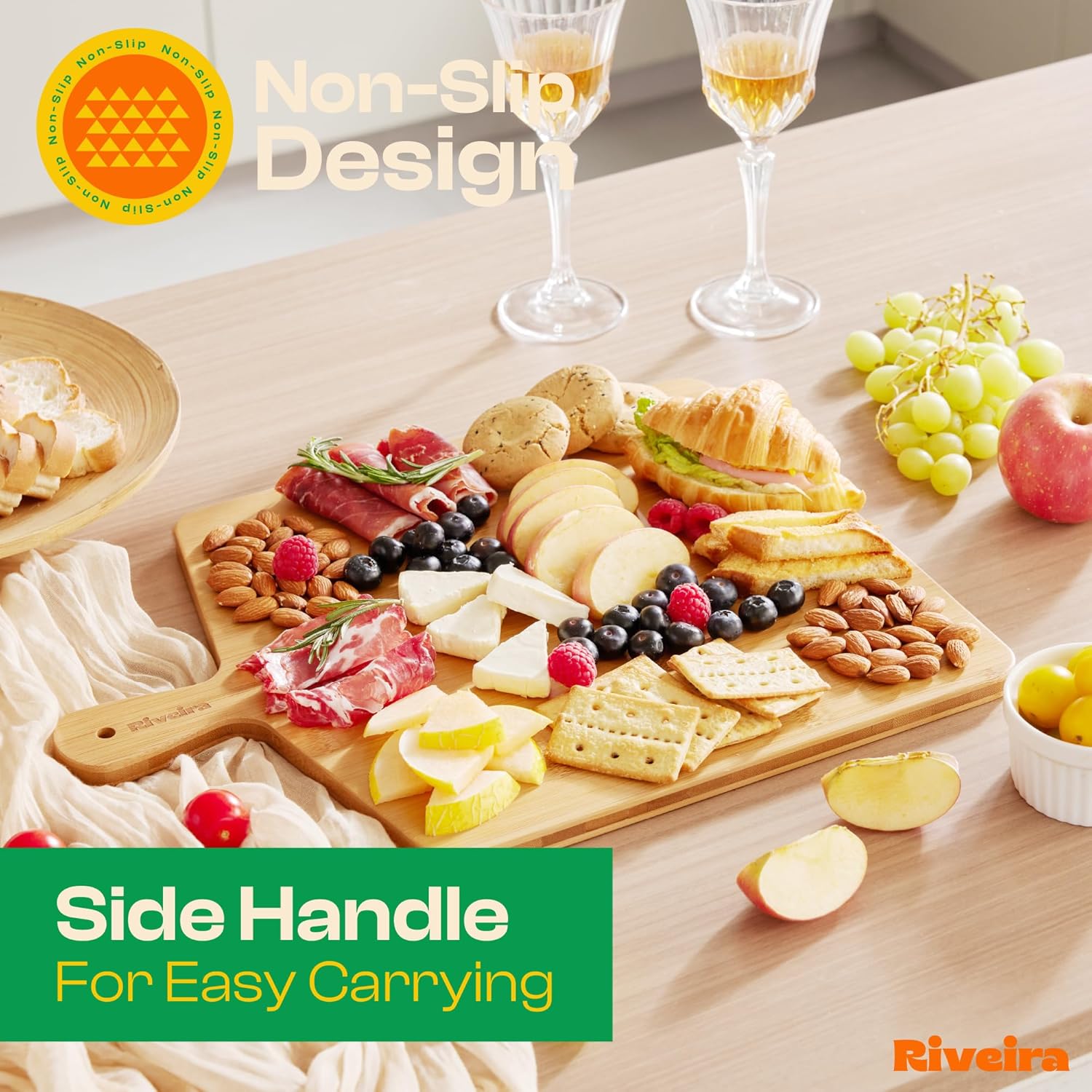 - Handle Everything with Confidence — The built-in handle holds of the bamboo cutting boards for kitchen are designed for handling everything with confidence. Pre-oiled and ready for immediate bewilderment, this white bamboo wooden chopping board is not just convenient for the kitchen mess but has a unique design to maintain, ensuring a performance that is both comfortable and clean for chopping boards for kitchen. Riviera non toxic cutting boards for kitchen will be perfect in your kitchen.