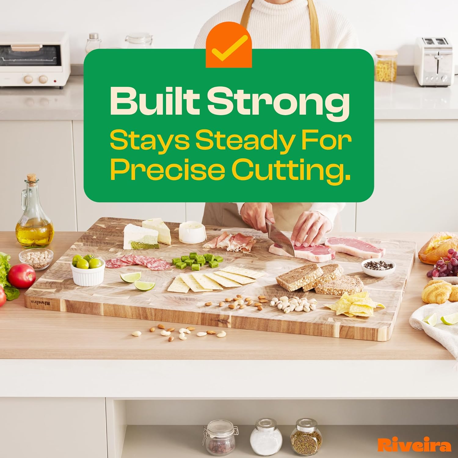 - Handle Everything with Confidence — The built-in handle holds of the acacia charcuterie boards large are designed for handling everything with confidence and easy maneuvering. Pre-oiled and ready for immediate bewilderment, this charcuterie boards extra large is not just convenient for the kitchen mess but has a unique design to maintain, ensuring a performance that is both comfortable and clean for charcuterie board large extra. Riviera big wooden cutting board will be perfect in your kitchen.