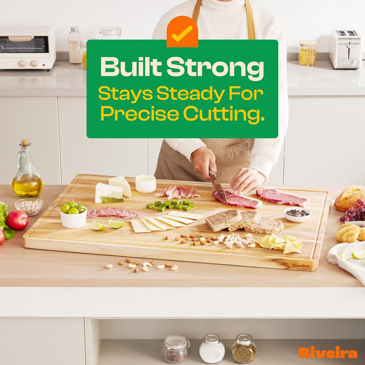 Riveira Teak Wood Cutting Board – Gourmet Teak Grandeur: 36 x 24 Wooden Cutting Board – Natural Wooden Cutting Boards For Kitchen Decorative – Innovative Juice Grooves Teak Wooden Chopping Board