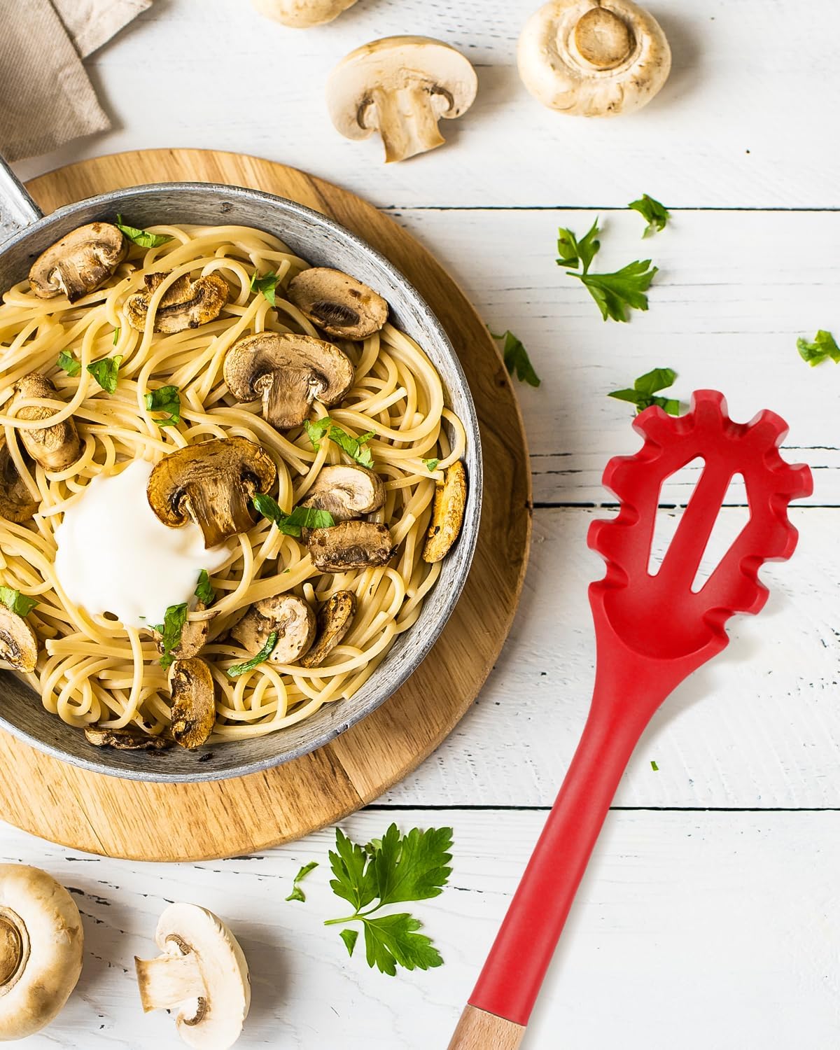 Silicone Pasta Fork, Kitchen Heat Resistant Noodle Spoon Server, BPA Free Spaghetti Strainer,12.8 inch (RED)