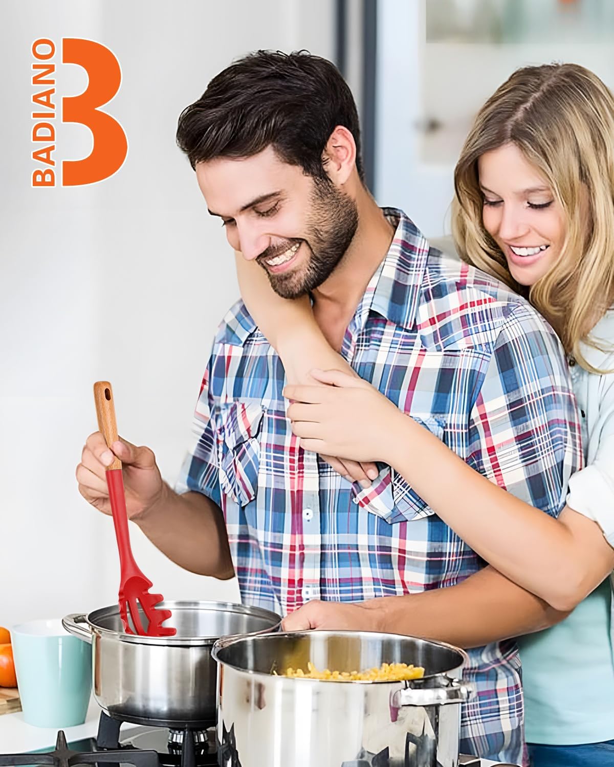 - Just Want To Provide The Best For You : The soft food-grade silicone head is designed for noise-free cooking. Unique sawtooth design, easy to pick up noodles. Whether it is used for stirring or serving spaghetti. Our silicone pasta fork will add more fun to your kitchen