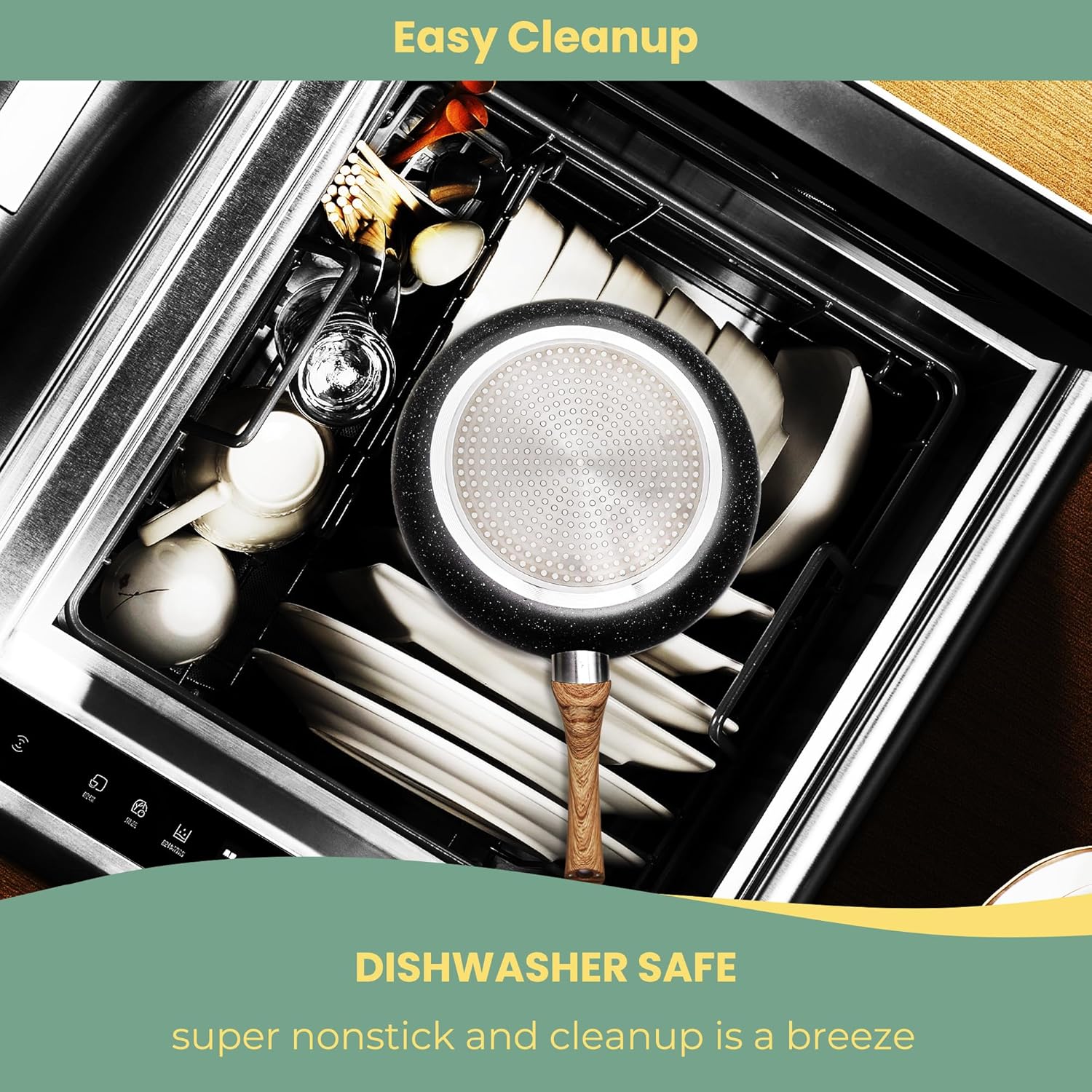 - Effortless Non-Stick Performance: Its non-stick surface not only ensures easy cleanup but also retains the food's nutrients and natural flavors, resulting in delicious and wholesome meals every time. Easy cleanup saves time for busy home chefs! (Dishwasher-safe but handwash recommended for longevity)