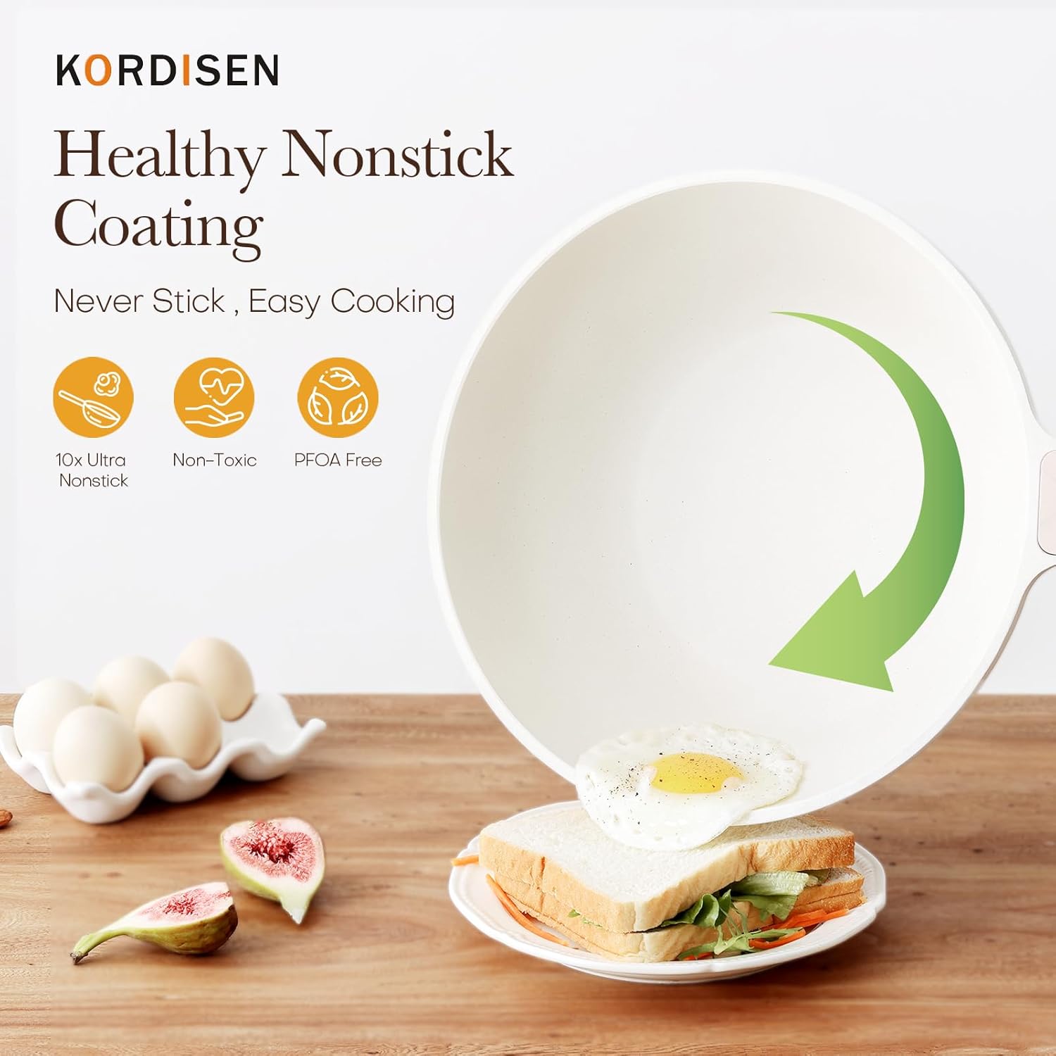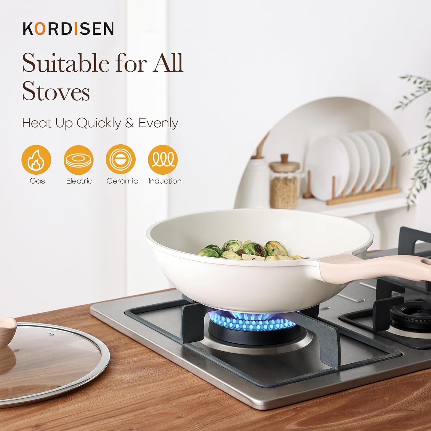Nonstick Wok with Lid, 12 Inch Woks & Stir-fry Pans, Healthy Coating Induction Cookware, Compatible with All Stovetops, PFOA Free (Cream White)