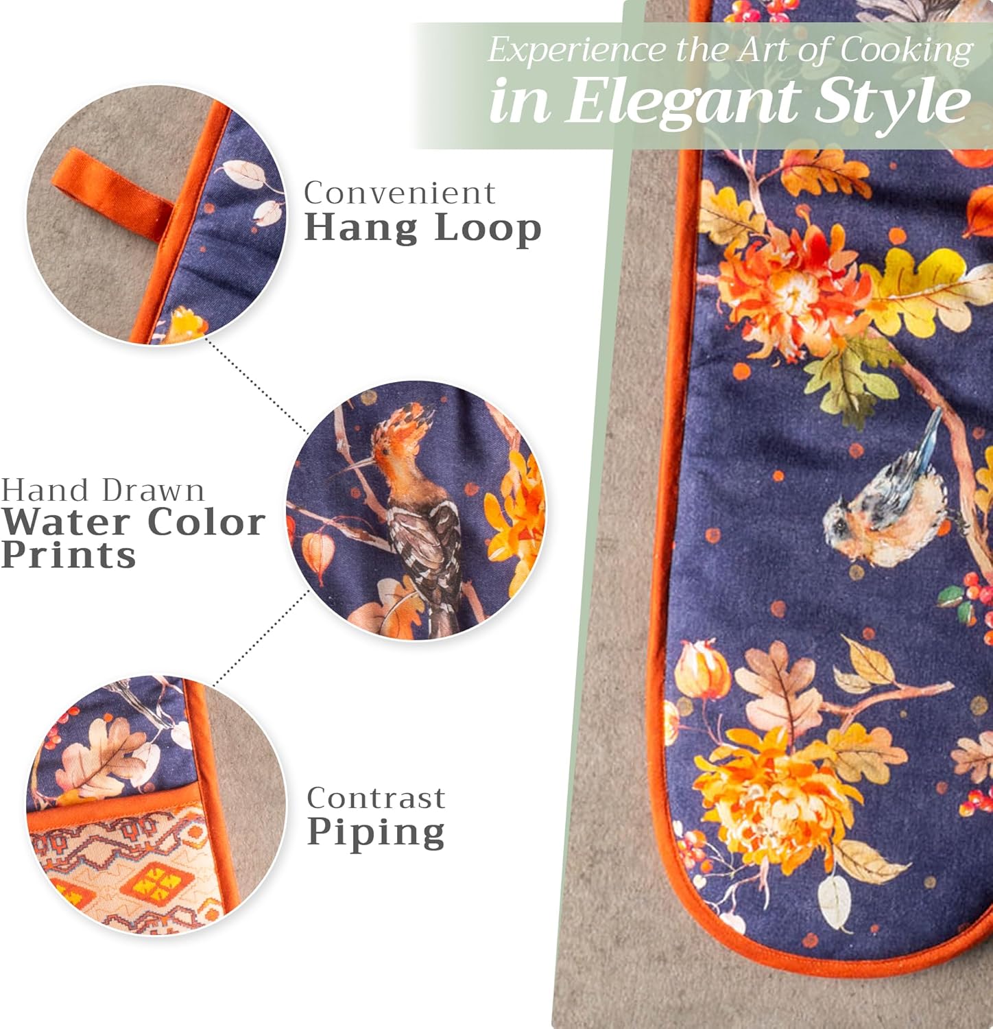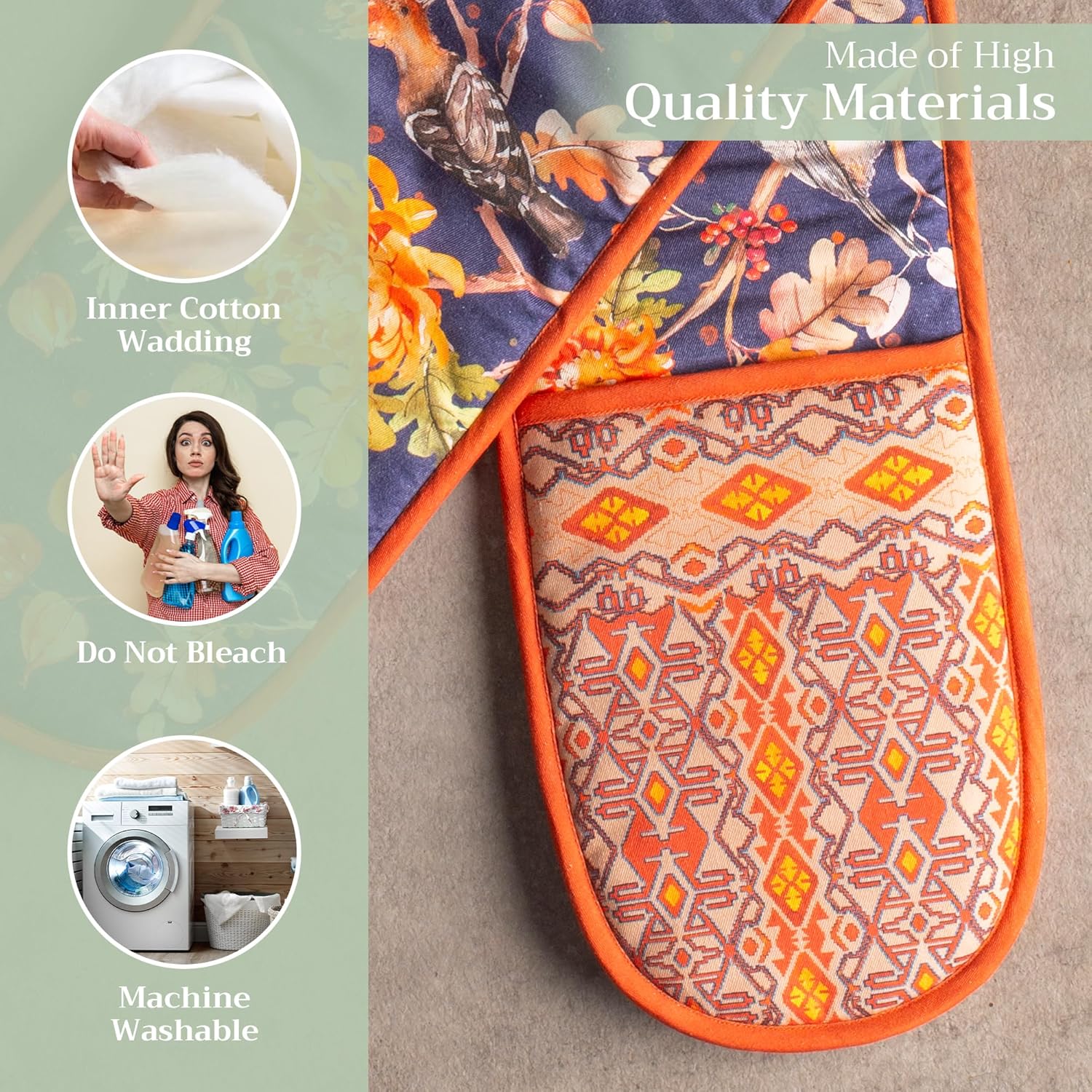 Maison d' Hermine Double Oven Mitt 100% Cotton Heat Resistant Cooking Gloves with Loop, Baking Barbeque, Handling Hot Pan, Kelim - Infinity - Thanksgiving/Christmas (7 Inch x 35 Inch)
