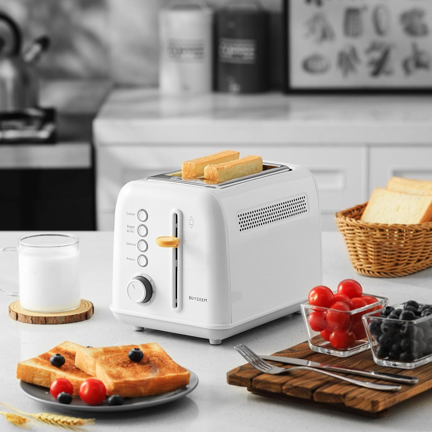 BUYDEEM DT620 2-Slice Toaster, Extra Wide Slots, Retro Stainless Steel with High Lift Lever, Bagel and Muffin Function, Removal Crumb Tray, 7-Shade Settings,Arctic White